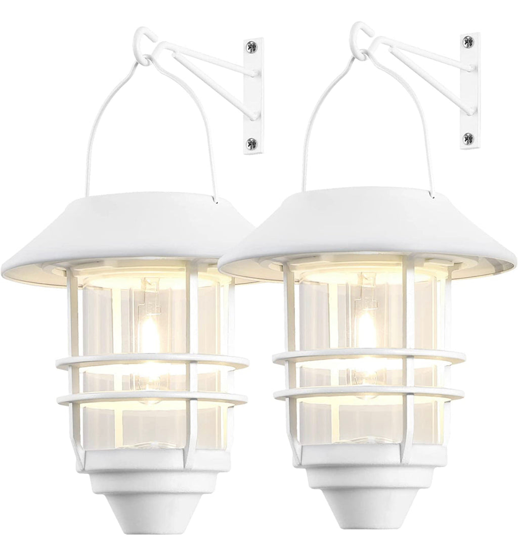 2 Pack Security Solar Hanging Lanterns , Wall/Porch Lights 15 Lumen Heavy Glass & Stainless