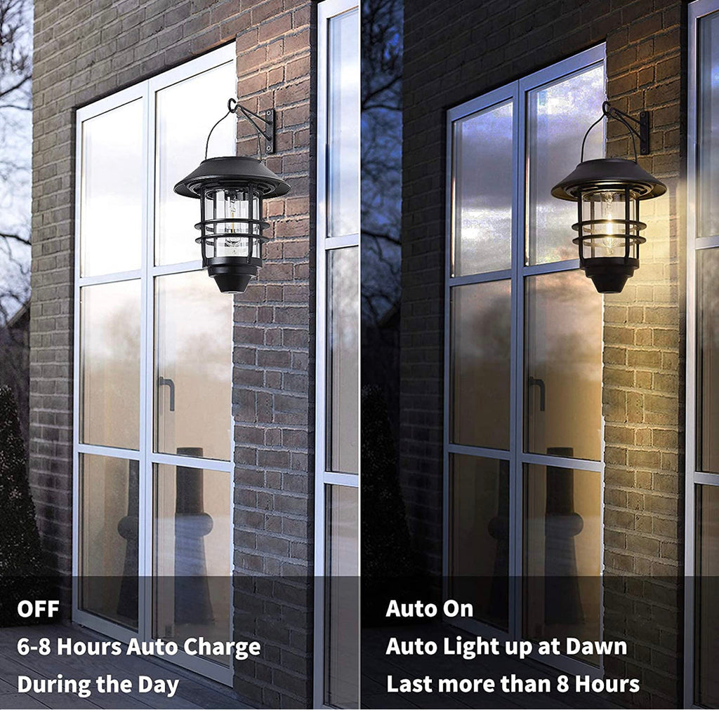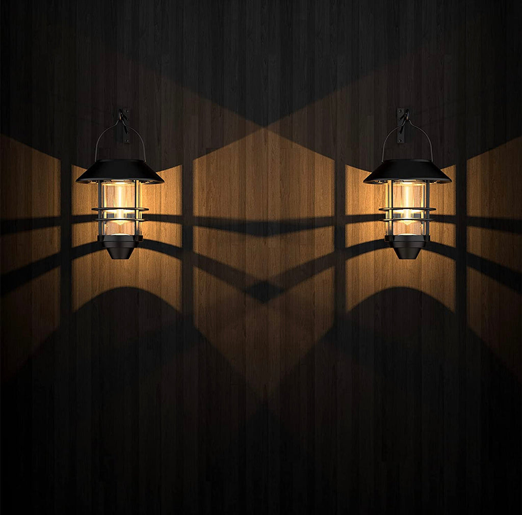 Solar Lantern Wall Lights features an attractive 19th-century lamp design. The unique hanging design allows each lantern to function as portable lights.