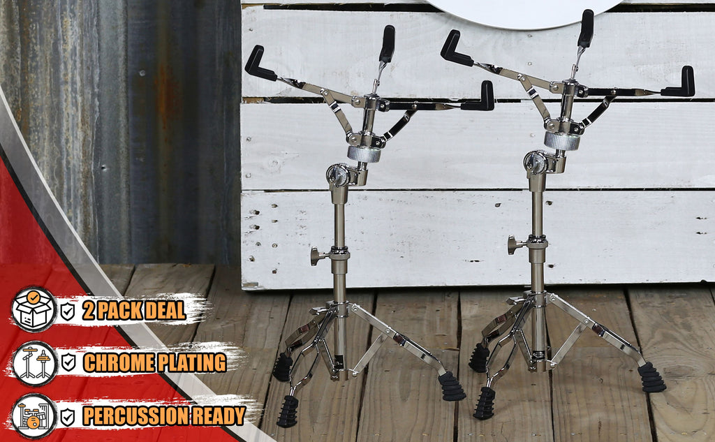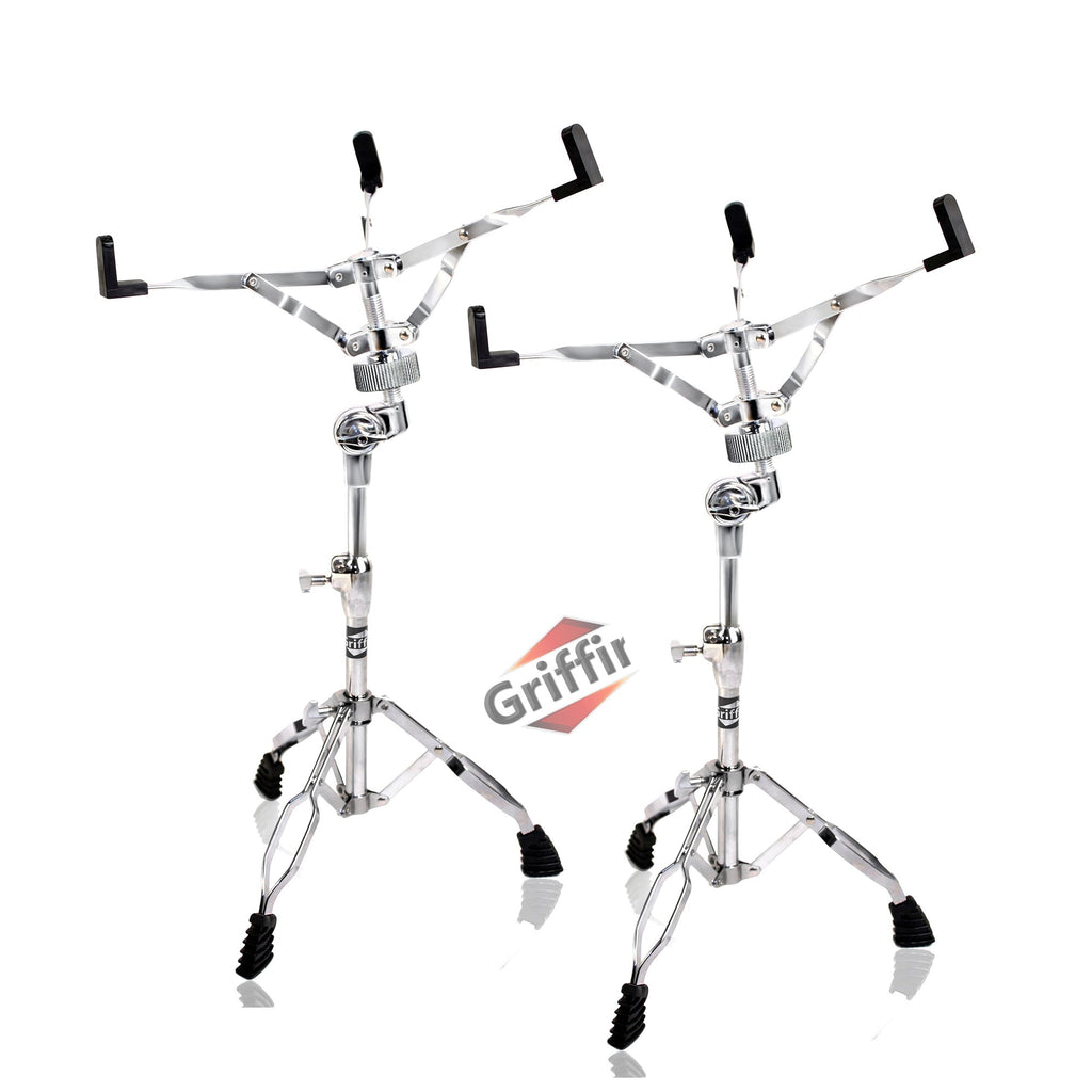 2-PACK Snare Drum Stand by GRIFFIN | Chrome Double Braced, Light Weight Mount for Standard Snares, Tom Drums & Practice Pad | Slip-Proof Gear Tilter & Clamp Style Basket Holder Percussion Hardware Kit