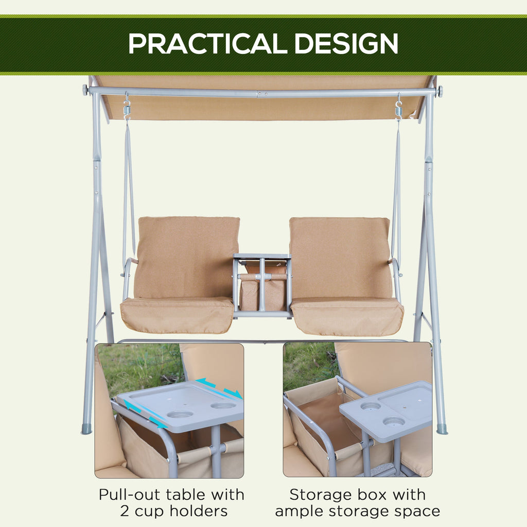 our outdoor swing is a stand-alone solution that can be placed anywhere outside. Place it on the patio, porch, backyard, garden, or anywhere else on the lawn. - Storage and Cupholders: Our patio swing chair comes with a cup holder. Easily place lemonade, coffee, or any other beverage inside so you won't need to risk your drink tipping over. Its tray is great for food, your phone, or magazines. Keep your things outside, dry, and nearby by making use of its extra storage space under the tray.