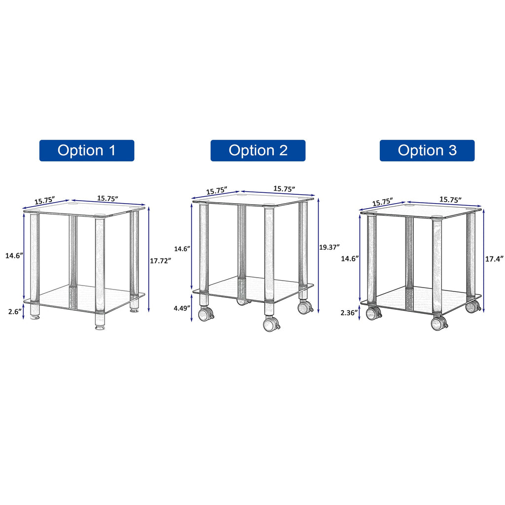 15.75”*15.75”*(17.4~19.37)"(with wheels), Weight Capacity: 110lbs