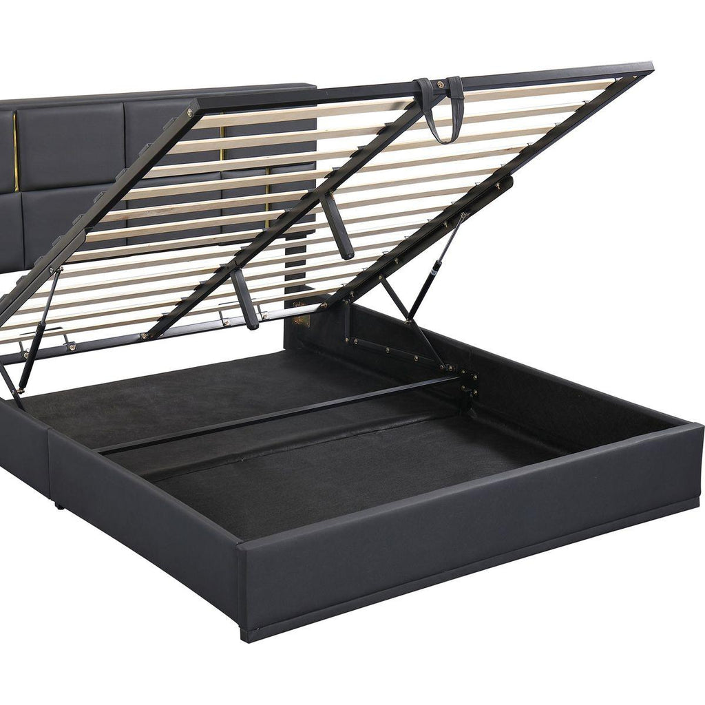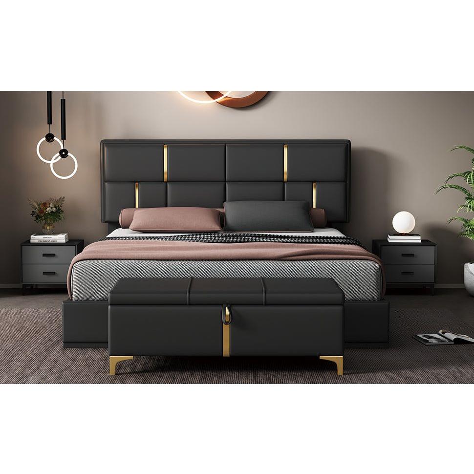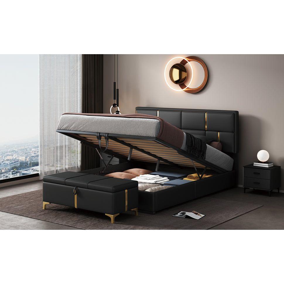 2-Pieces Bedroom Sets,Queen Size Upholstered Platform Bed with Hydraulic Storage System,Storage Ottoman with Metal Legs,Black