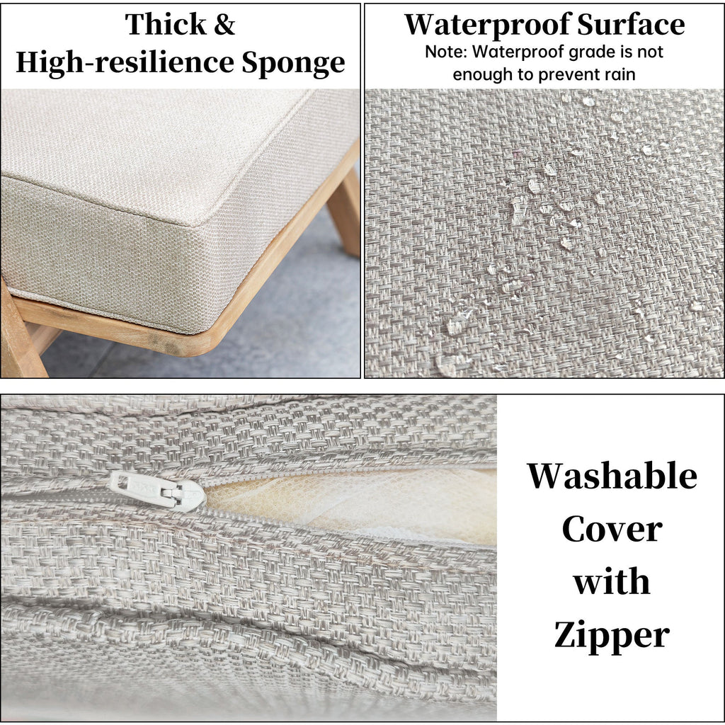Our functional loveseat brings color and pleasure to your outdoor space. Made of premium acacia wood, this set has sturdy and durable construction. Paired with soft sponge cushions and high backrests, our conversation set provides upgraded comfort for you. The cover of cushion is easy to remove and wash with smooth zipper. This outdoor furniture set is perfect for your garden, backyard, deck, etc.