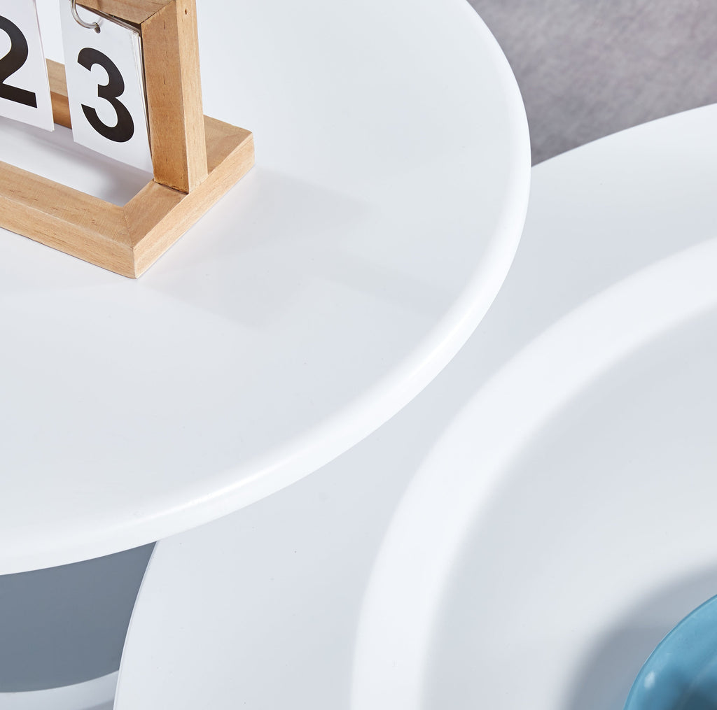 - 2. Sleek and Modern Design: Crafted from premium matte white MDF material, these coffee tables add a touch of elegance to any living space. With their clean lines and minimalist design, they effortlessly blend into any decor theme.