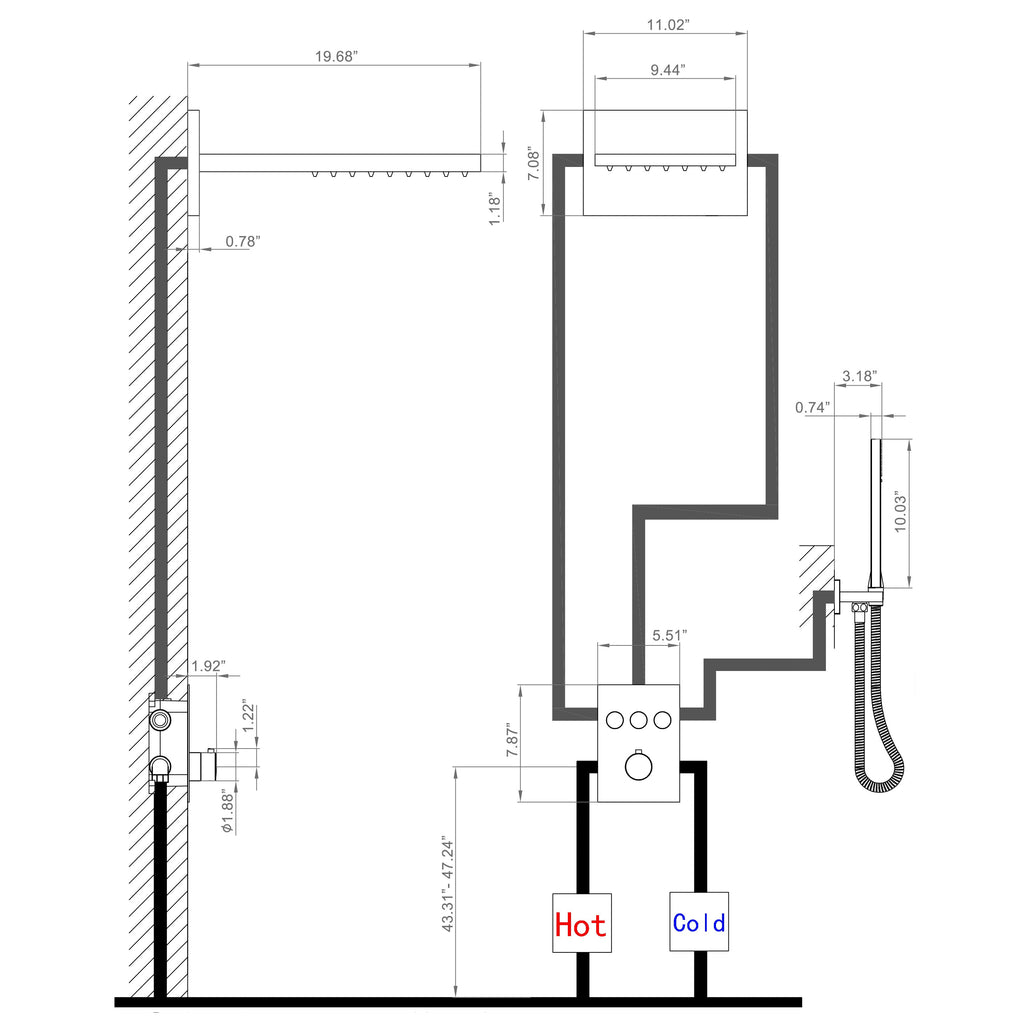 The complete shower system includes a rain shower head and hand shower with pressure-balanced valves that embellish your bathroom.