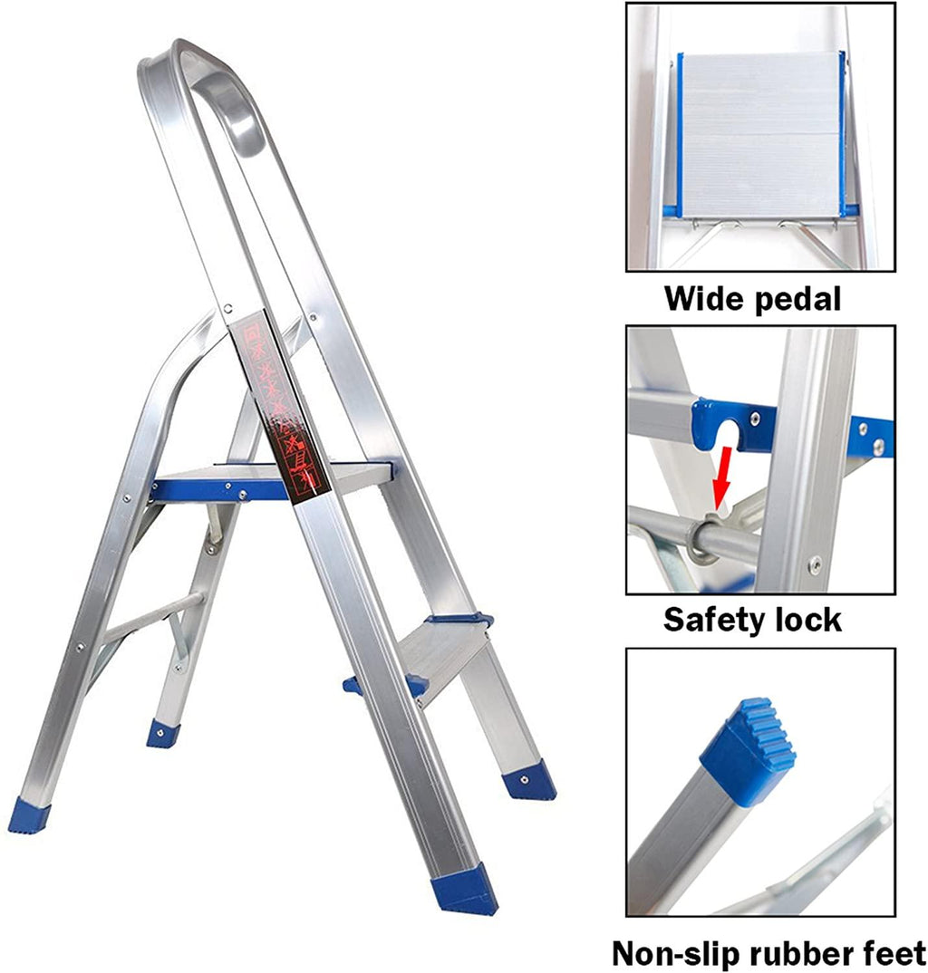 Anti-Slip: Each metal step has an anti-slip surface, and the four feet are also anti-slip. Allows you to use the ladder easily.