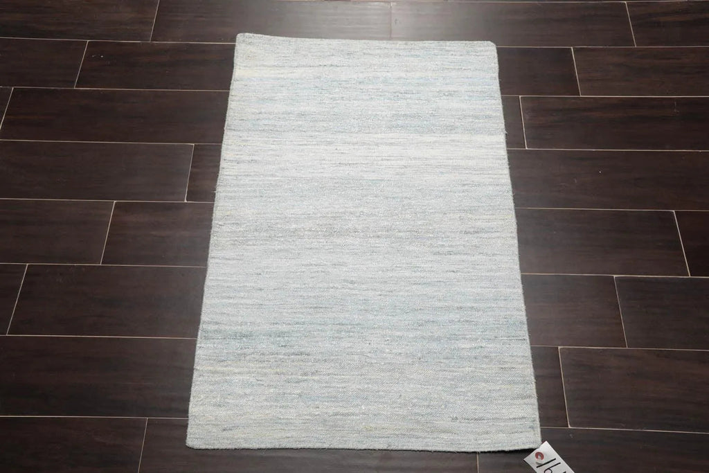 2' x 3' Hand Woven 100% Silk Modern Flatweave Kilim Oriental Area Rug Blue