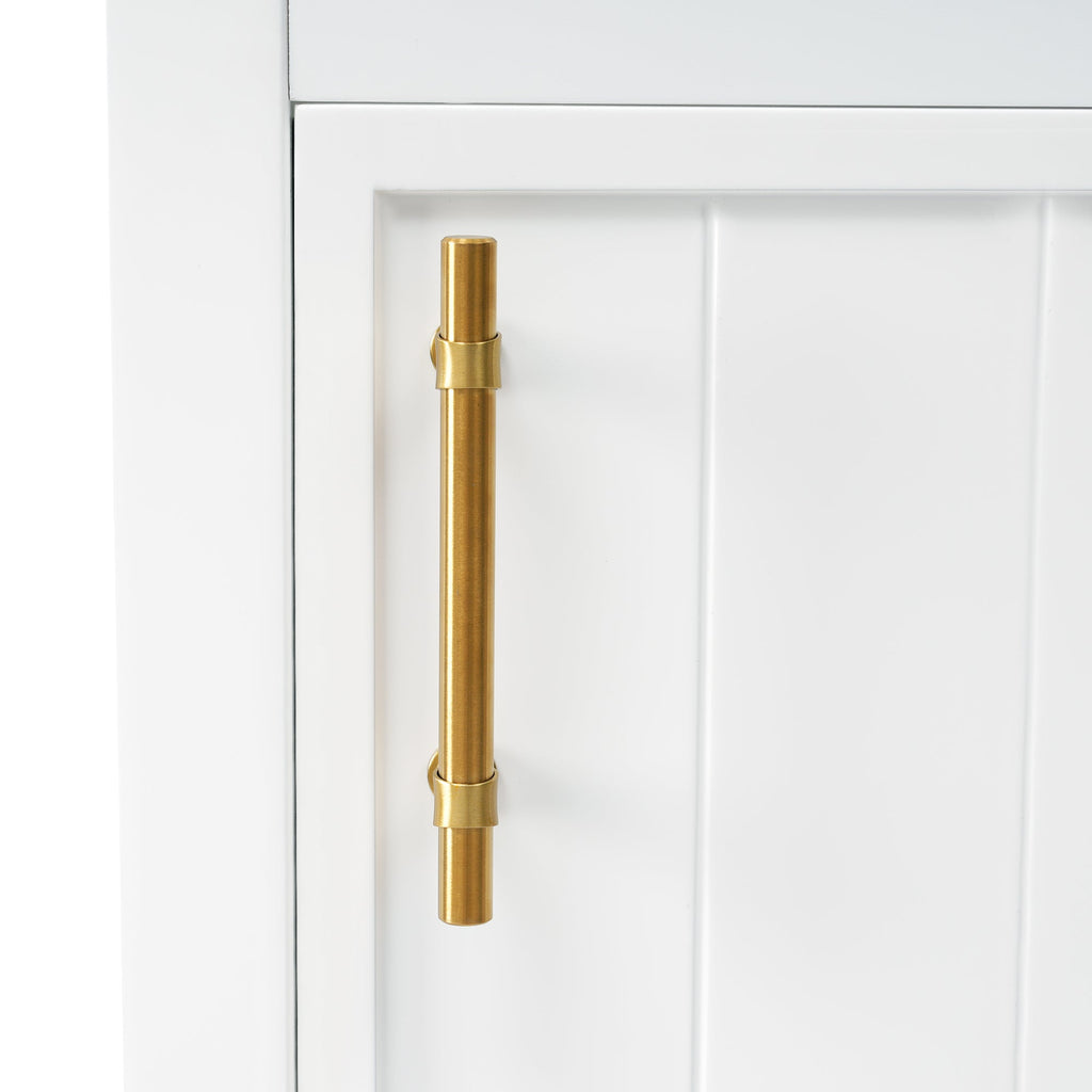 - Thoughtful Details: Considering the humid environment in the bathroom, the door hinges and handle are made of stainless steel, which is not easy to rust. In order to keep silent when open and closing the door, the soft closing door is selected for this cabinet. The bar handle on the door, creating a modern look that is smooth to the touch and pleasant to use.