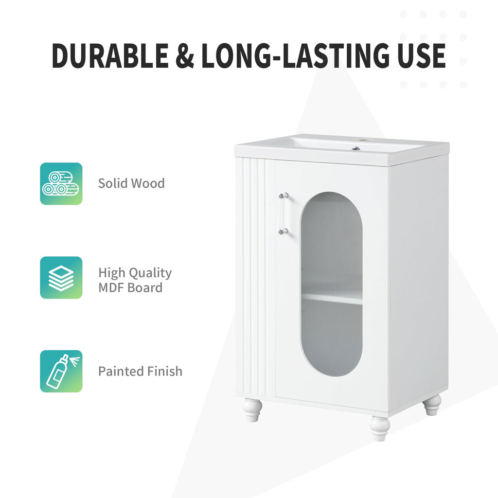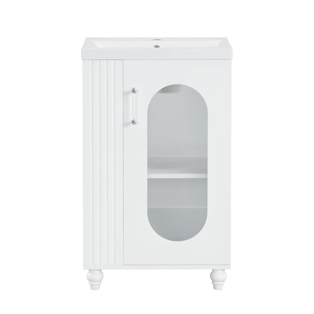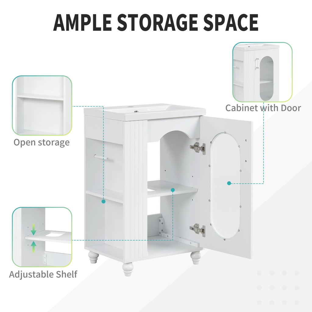 20" Bathroom Vanity with Sink, Bathroom Vanity Cabinet with Two-tier Shelf, Adjustable Shelf, Solid Wood and MDF, White
