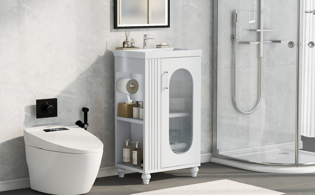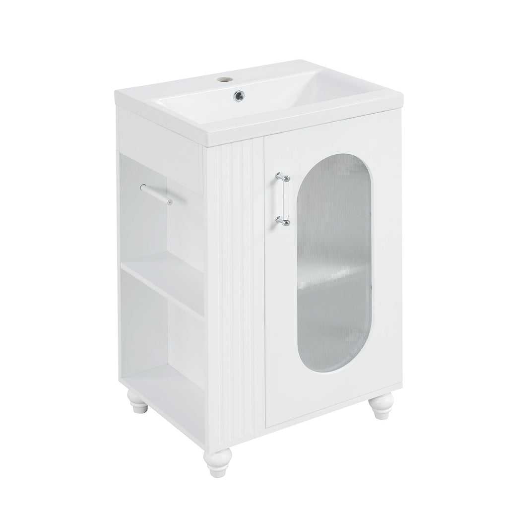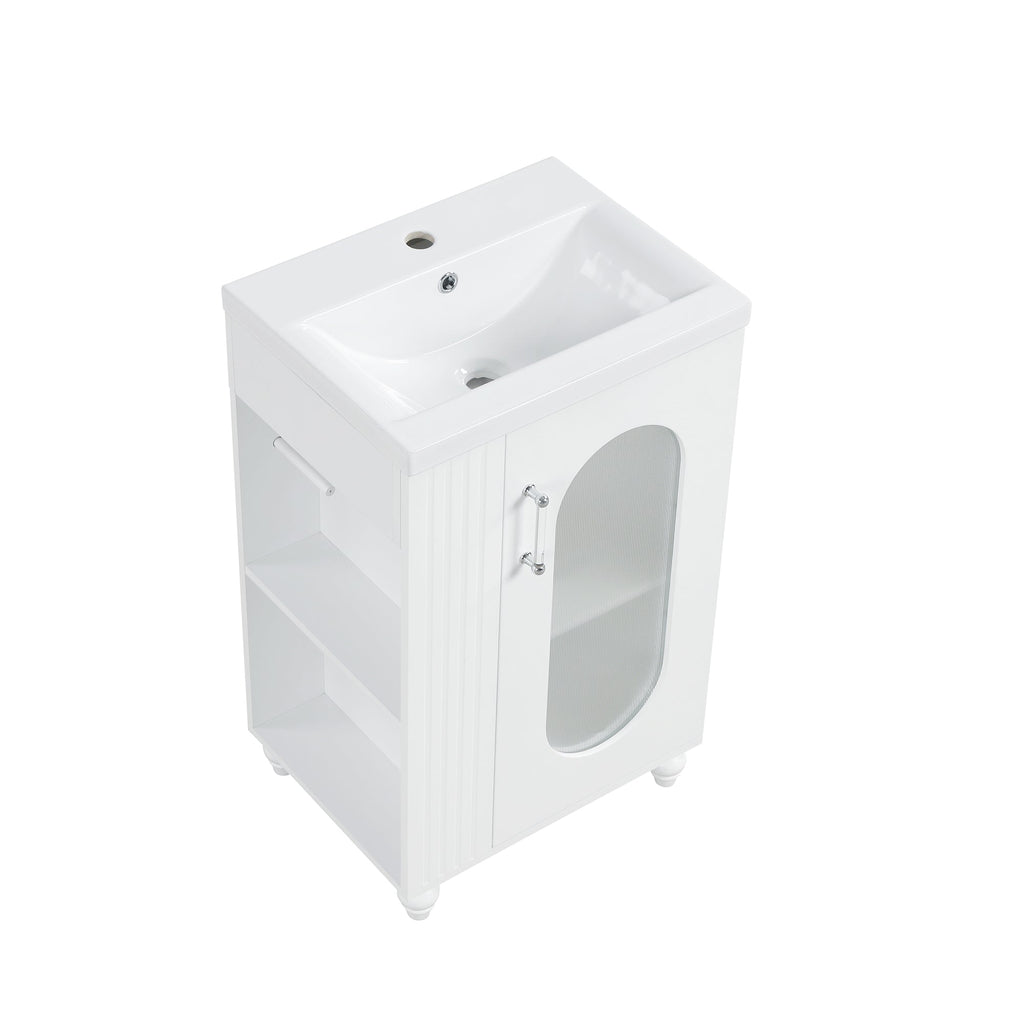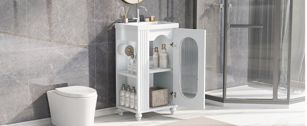 20" Bathroom Vanity with Sink, Bathroom Vanity Cabinet with Two-tier Shelf, Adjustable Shelf, Solid Wood and MDF, White