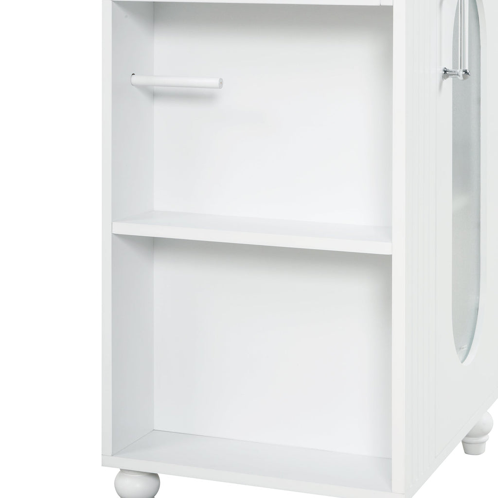 • Vanity with Cabinet & Toilet Paper Holder & Shelf - This bathroom vanity has different storage space: one cabinet with door, two-tier storage shelf on the side, and toilet paper holder. You can put soaps, towels, shampoos, tissue paper and other bathroom essentials in it.