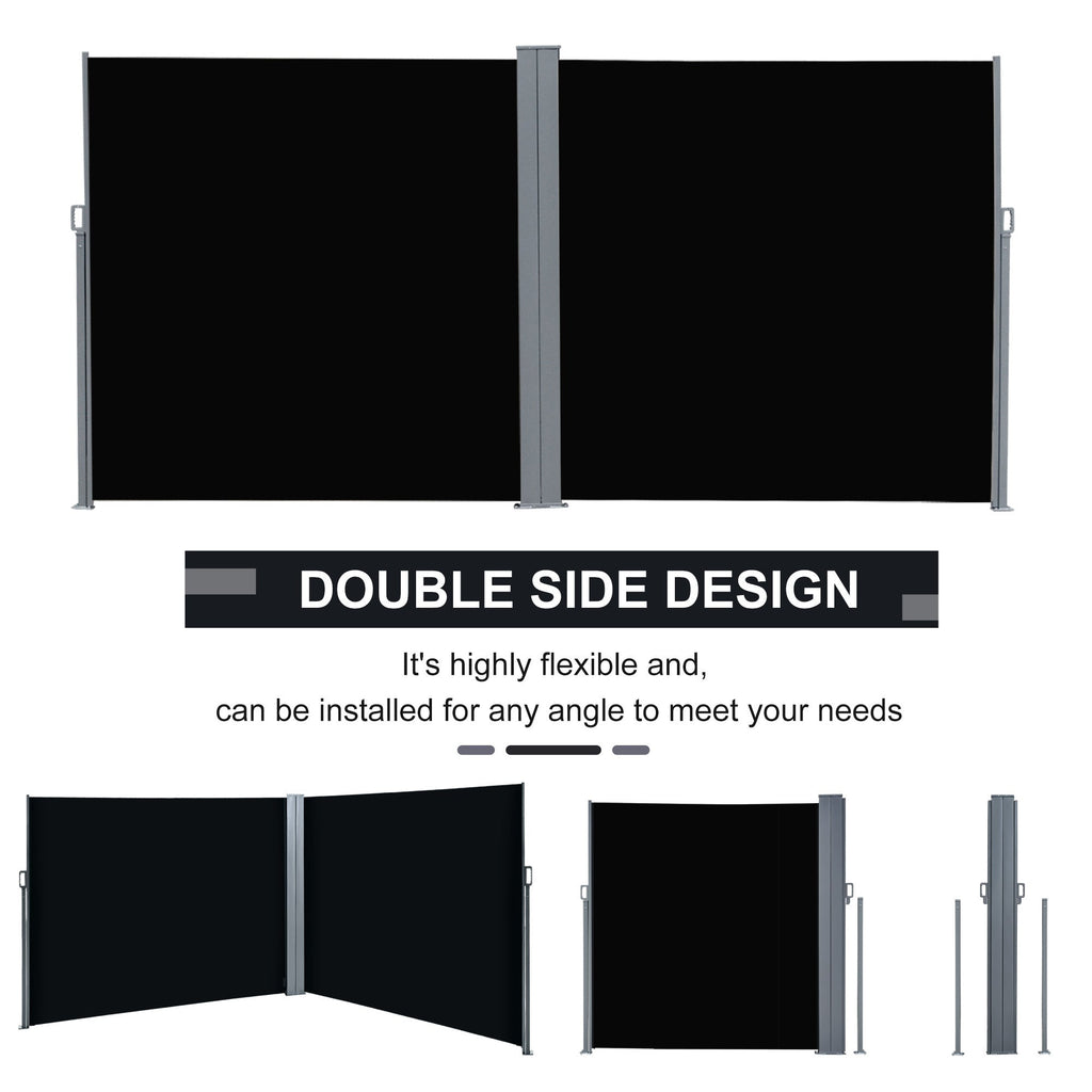 20' Double Retractable Patio Side Awning Garden Sun Shade with UV-Fighting Screen, Auto Pull-Back Function, & Steel Frame, Outdoor or Indoor Use, Black