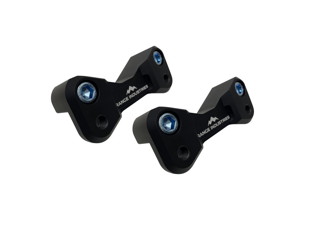 These brackets shift your stock CV calipers outward to allow use of a 14” Mustang rotor. This will give approximately a 20% increase in braking power.