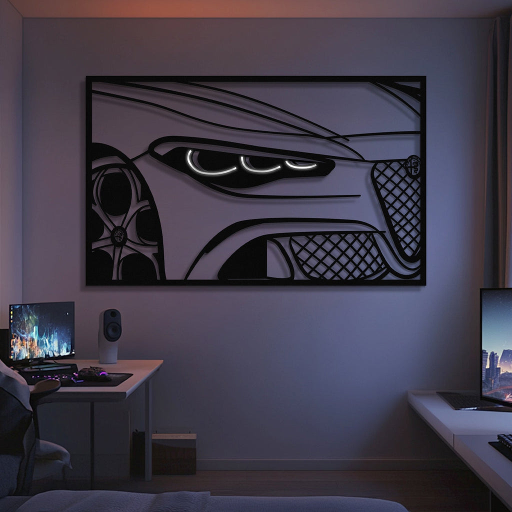 This 2025 Quadrifoglio Apex Front View Metal Neon Frame Wall Art will turn any car enthusiast's home, garage, hallway, living room, bedroom, or office into a unique space, add a stylistic look and captivate petrolheads as well as visitors.