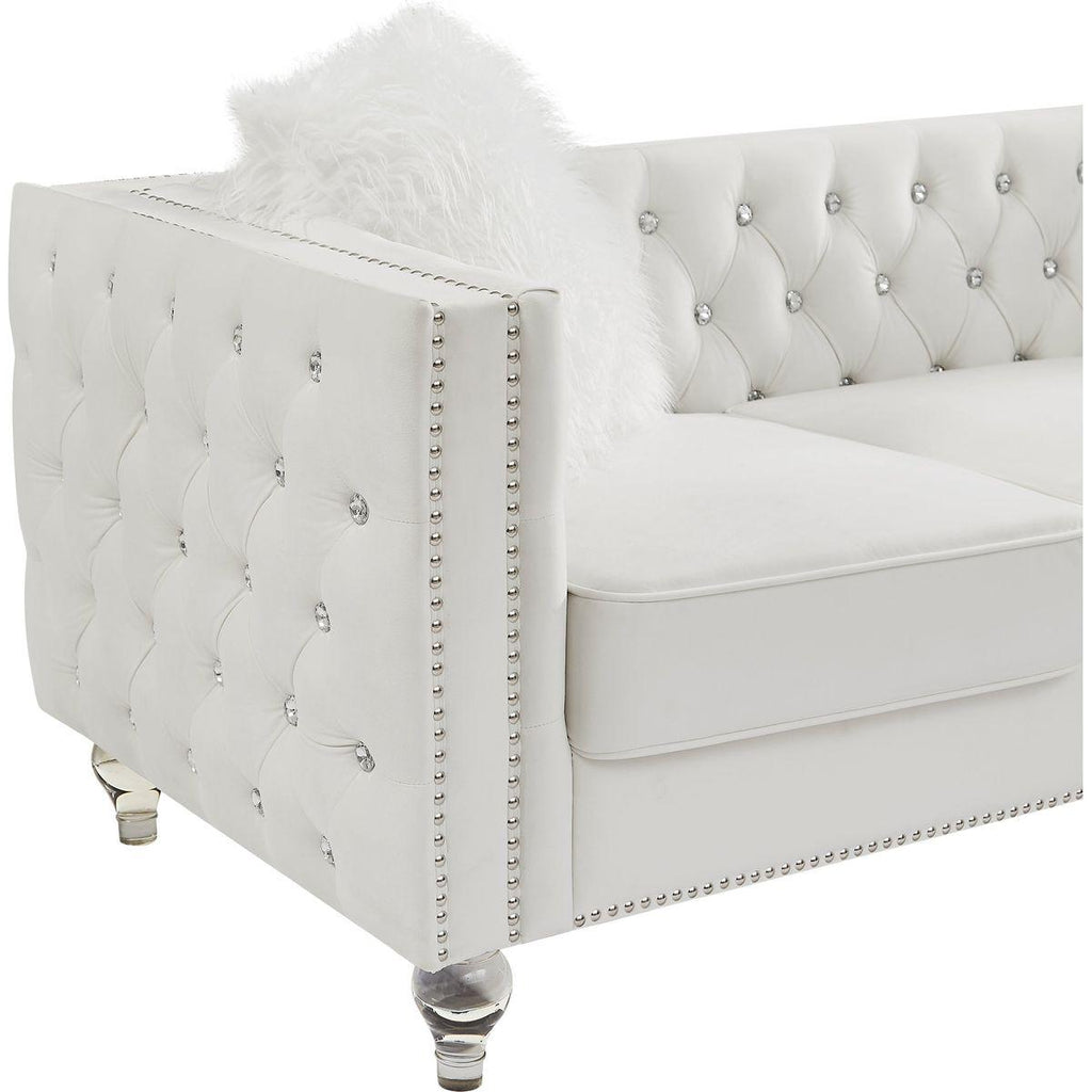 - CHESTERFIELD STYLE: This seating group is designed in a traditional Chesterfield style, adorned with tons of crystal buttons,