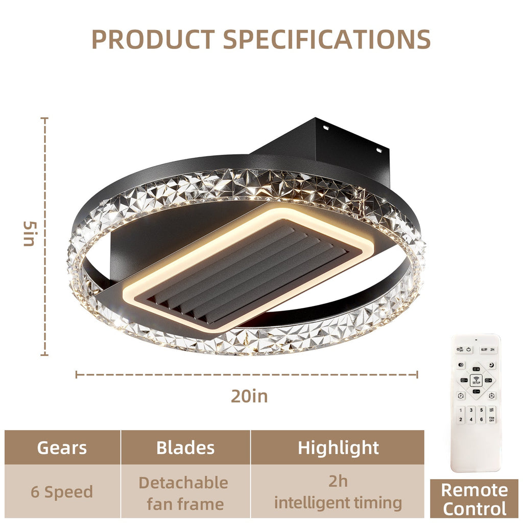 20inch Modern Leafless Ceiling Fan with Remote Control Removable and Washable, Reversible Motor