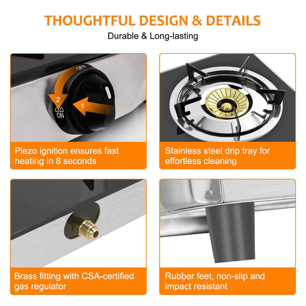 - Effortless Cleaning - Portable gas burner is made of tempered glass, non-toxic, high-temperature resistance, and wear-resistant insulation. Easy to remove pot support and drip pan to clean