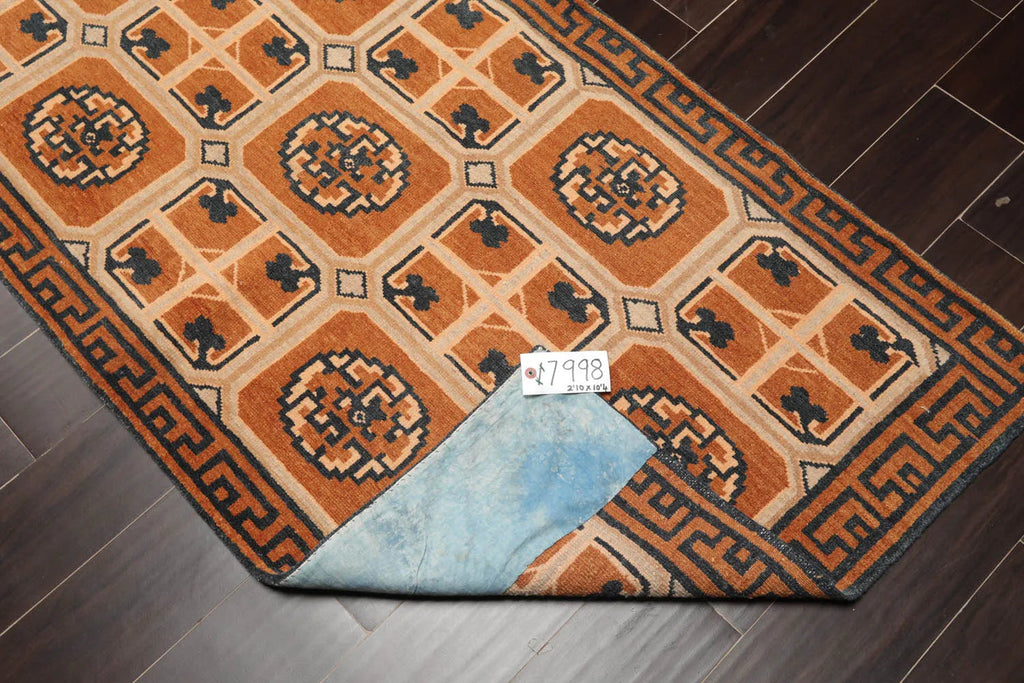 2'10''x10'4'' Hand Knotted Tibetan 100% Wool Greek Key Transitional Oriental Area Rug Beige, Brown Color Runner