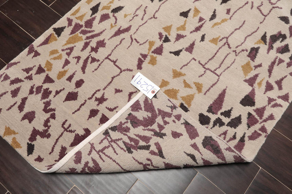 This is a beautiful Beige, Charcoal, Aubergine Color Graphic design Hand Knotted, Tibetan Oriental 100% Wool Rug.