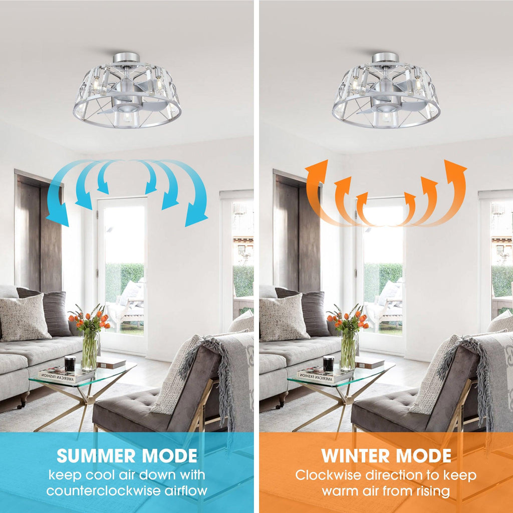 This 23" fandelier farmhouse ceiling fan with lights is set with hanging high-quality crystal, 3 ABS retractable blades, a high-quality metal base, and a woody light shade. The drum-shaped round lampshade, which merges farmhouse and retro elements, is low-key and luxurious, very suitable for Industrial style indoor spaces, such as bedrooms, living rooms, dining rooms, corridors, etc. And it can turn on the lights separately when you turn off the fan. The small-size fan blades made with ABS are safer and more stable than other fan lights while ensuring functionality, which also makes them the ideal ceiling fan for your home. It features a reversible, multiple-speed-powerful motor, and delivers an ultra-powerful airflow with quiet performance. It can be run in the winter to aid in rotating warm air and cutting down on energy costs. The reverse airflow feature allows you to quickly change the direction of the fan, for proper distribution of air. All functions of our ceiling fan with lights and remote can be easily controlled by the remote control.