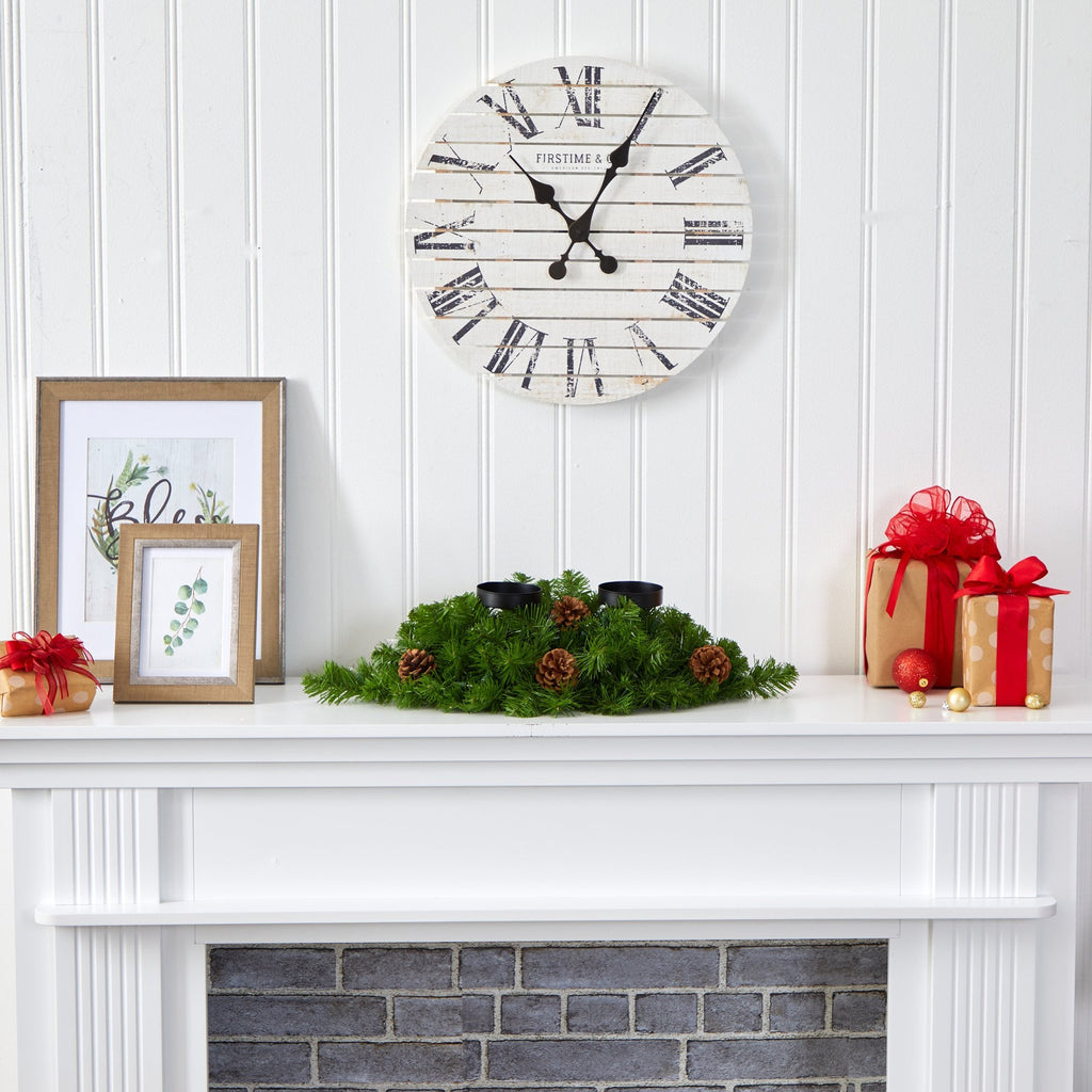 Set your home aglow this holiday season with the help of this artificial candelabrum; specifically designed as an elaborate candle holder, it’s intricately designed from a rich overgrowth of realistic looking evergreens, handsomely accented with miniature faux pinecones, all carefully surrounding a trio of candle holders. Better yet, this seasonal centerpiece comes already pre-strung with 35 warm white lights, eliminating pre-tangled messes and holiday stress. Reaching 24” long, this winter-ready decorative accent would make an enchanting addition to a mantle or a holiday-inspired tablescape.