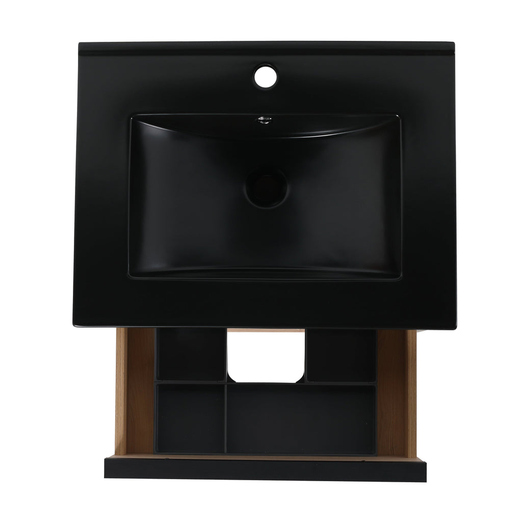 [Easy Installation]: Vanity base already assembled, all you are just required to install basin top to cabinet. (The product is shipped in two packages) [Package includes]: - 1x Vanity Cabinet - 1x Ceramic Sink - Drawer Storage Box [Package not include]: Faucet, Pop-up Drain, Drain Assembly, P-Trap, Back-splash and Mounting Bracket are not included. Care、Cleaning and Maintenance: 1. Dust regularly with a soft, dry cloth. 2. Avoid the use of all chemicals, household cleaners, abrasives, or cleaners that contain lemon, vinegar, or other acids that may damage the finish. 3. Excessive exposure to sunlight and extreme changes in temperature and moisture can damage wood furniture. 4. The sink is fragile, please pay attention to maintaining its appearance. 5. Do not place hot appliances, such as curling irons and hot hair dryers directly on the countertop.