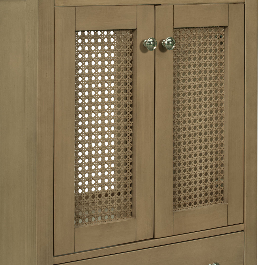 - Notable Details: The hinges and handles of this bathroom vanity select hardware as the material. Tapered legs and woven hollowed-out doors enhance the classic quality of the country style. The anti-toppling fitting can avoid the accidental injury during the usage.