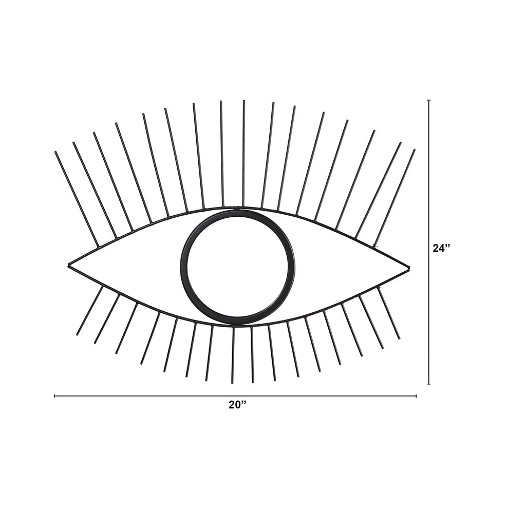 Keep evils away with this Hand Crafted Gold Metal Eye Wall Décor Accent Mirror. Designed from metal in a gold finish, this accent mirror has a silhouette of a wide eye open with stylish eyelashes. The mirror in the center is reflective and proves that beauty is in the eye of the beholder. Measuring 24" in height, easily hang this eye-catching accent mirror in any space. Curate on top of a table for an elevated look. Perfect to display above a bar, nook or bathroom. Looks great in glam, boho, mid-century and modern home decor styles."