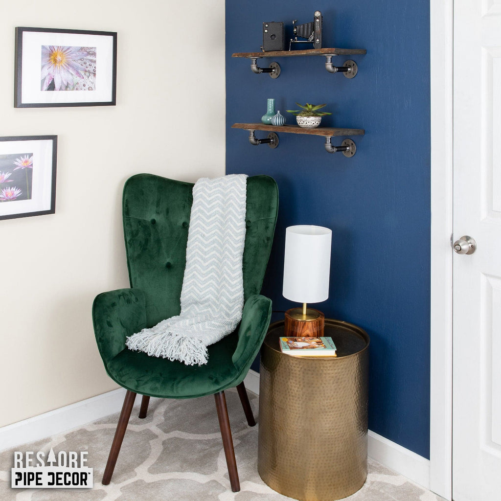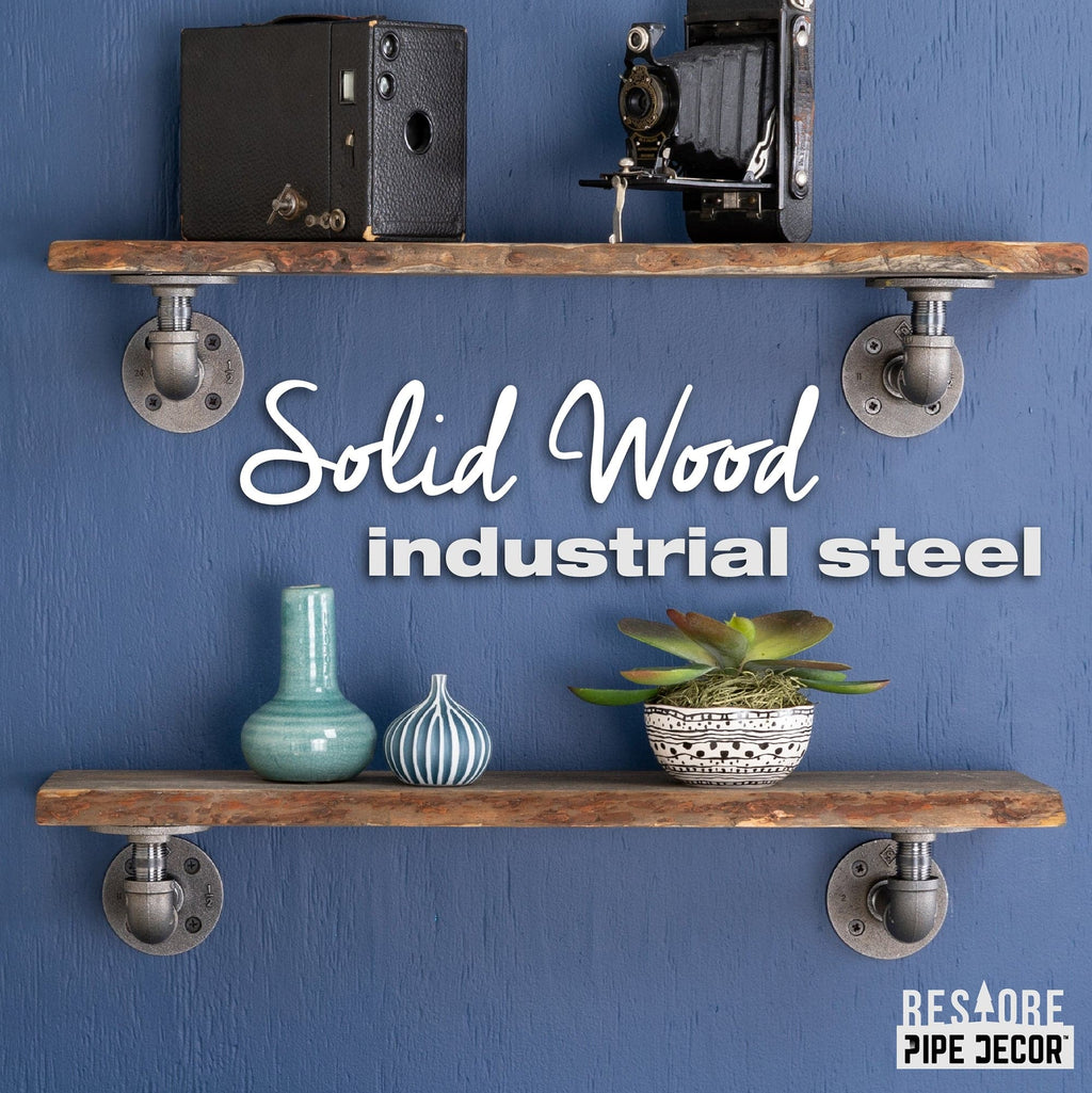Bring the forest home with real, live edge wood shelves. Our collection of solid wood shelves and industrial L-shaped pipe brackets offers a chic, distressed look that feels refined yet rustic. The live edge incorporates the natural exterior of the tree into the shelf’s final design for an organic flow that can’t be replicated. These shelves suit a variety of aesthetics and work well in kitchens, bedrooms, offices, living rooms, dining rooms, and more. Display your decor with a statement shelf you won’t find anywhere else. With live edge wood, you might see lateral knots, bark inclusions, or marks where the tree was affected by wildfires. These are purely aesthetic and will not affect the quality of your shelf. Our shelf brackets come coated with a protective oil to prevent rust during transit. We recommend wearing gloves to clean each piece. Coat with metal polish or clear coat to prevent rusting. Step-by-step cleaning and sealing instructions are included. Our reclaimed wood shelves have a story to tell. Our lumber is sustainably harvested in partnership with Mexico’s SEMARNAT or through the Forest Stewardship Council of the United States, through responsible forestry efforts that maintain the health and balance of the land.