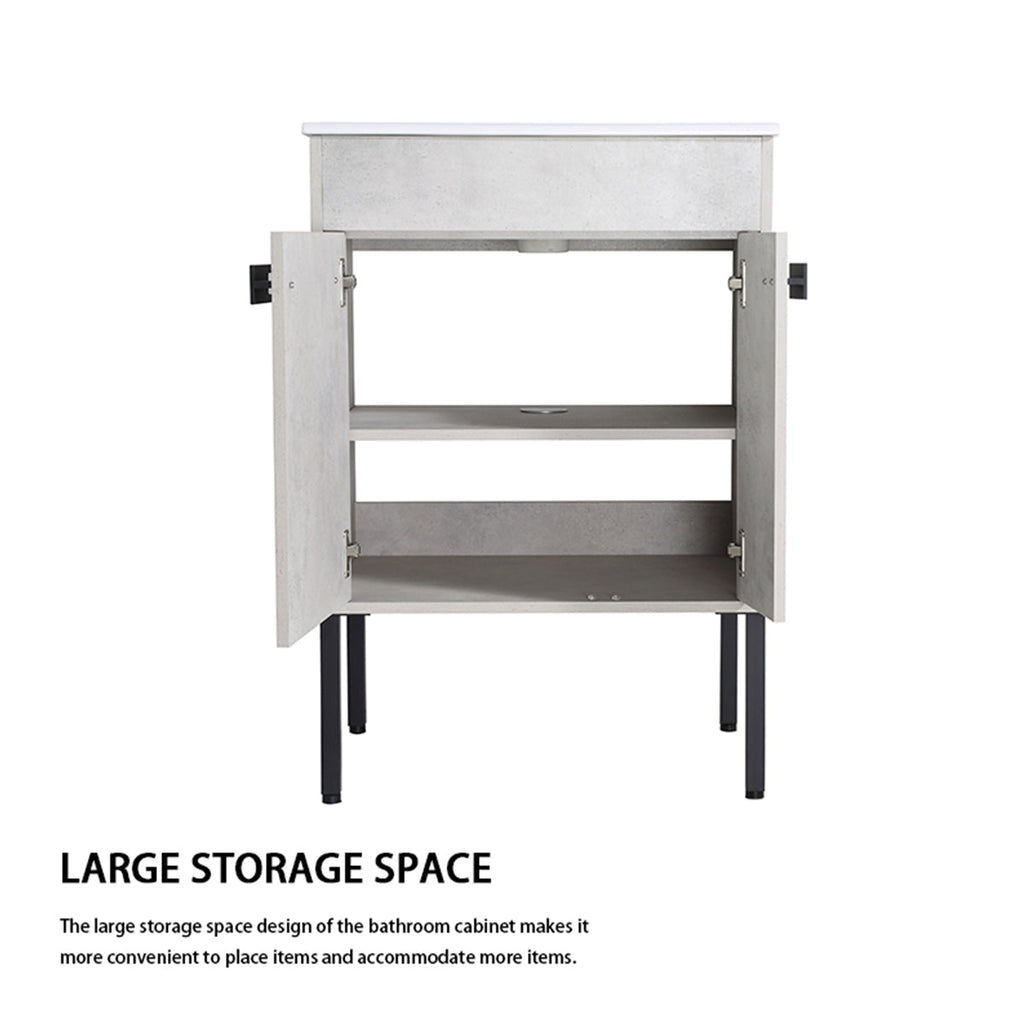 | Package includes | - 1x Vanity Cabinet; - 1x Ceramic Sink; - 2x Metal Handle; - 4x Metal Feet |