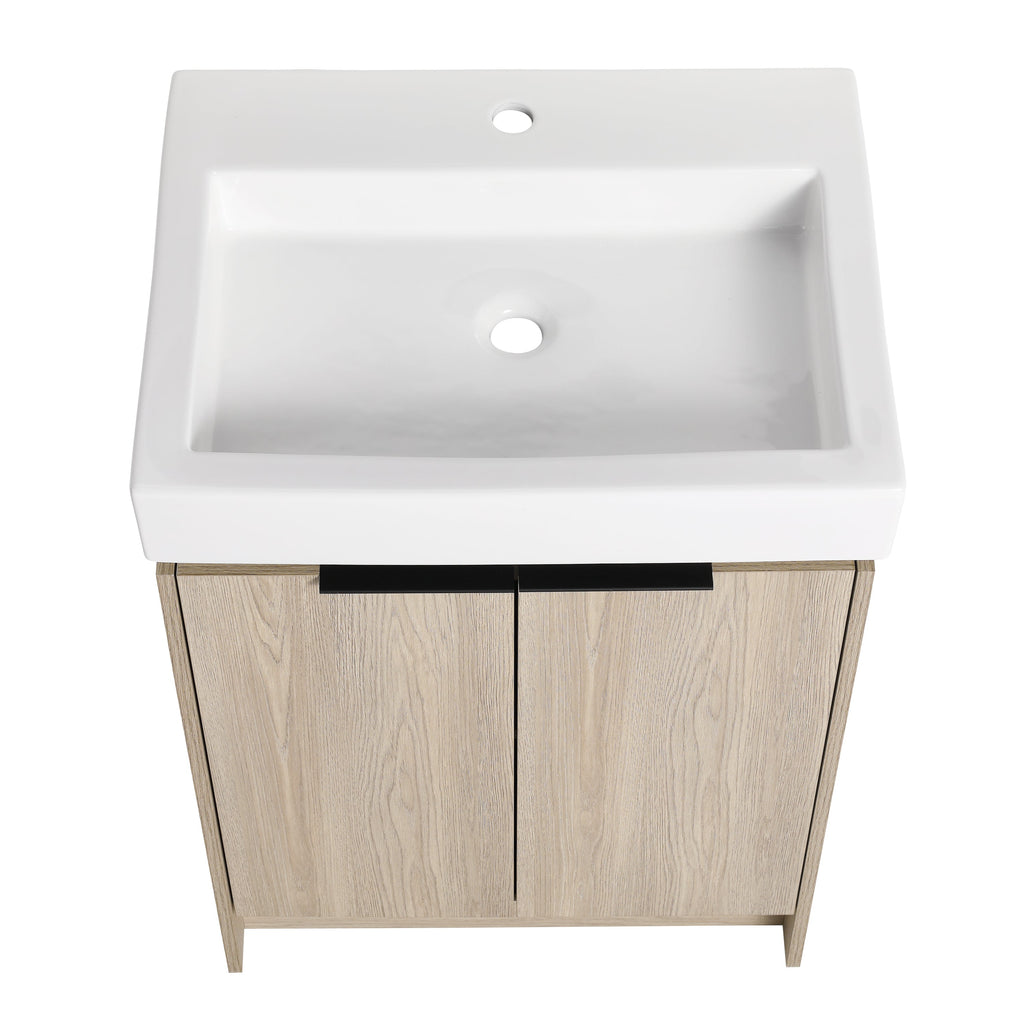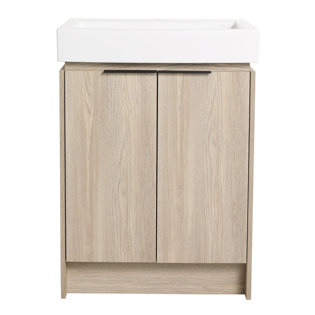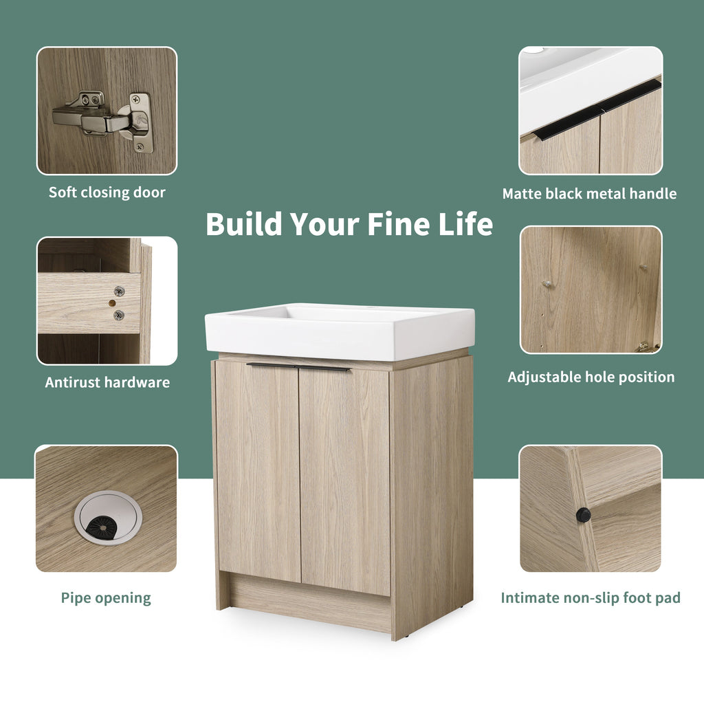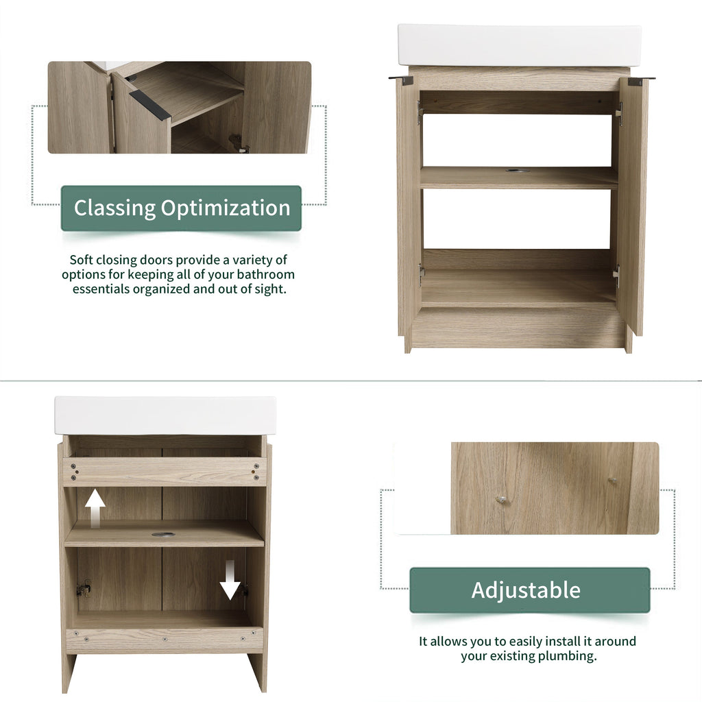 The material of the door hinges is stainless steel. These materials are extremely water-resistant and suitable for humid environments. That will allow this longevity of this bathroom vanity to last long.