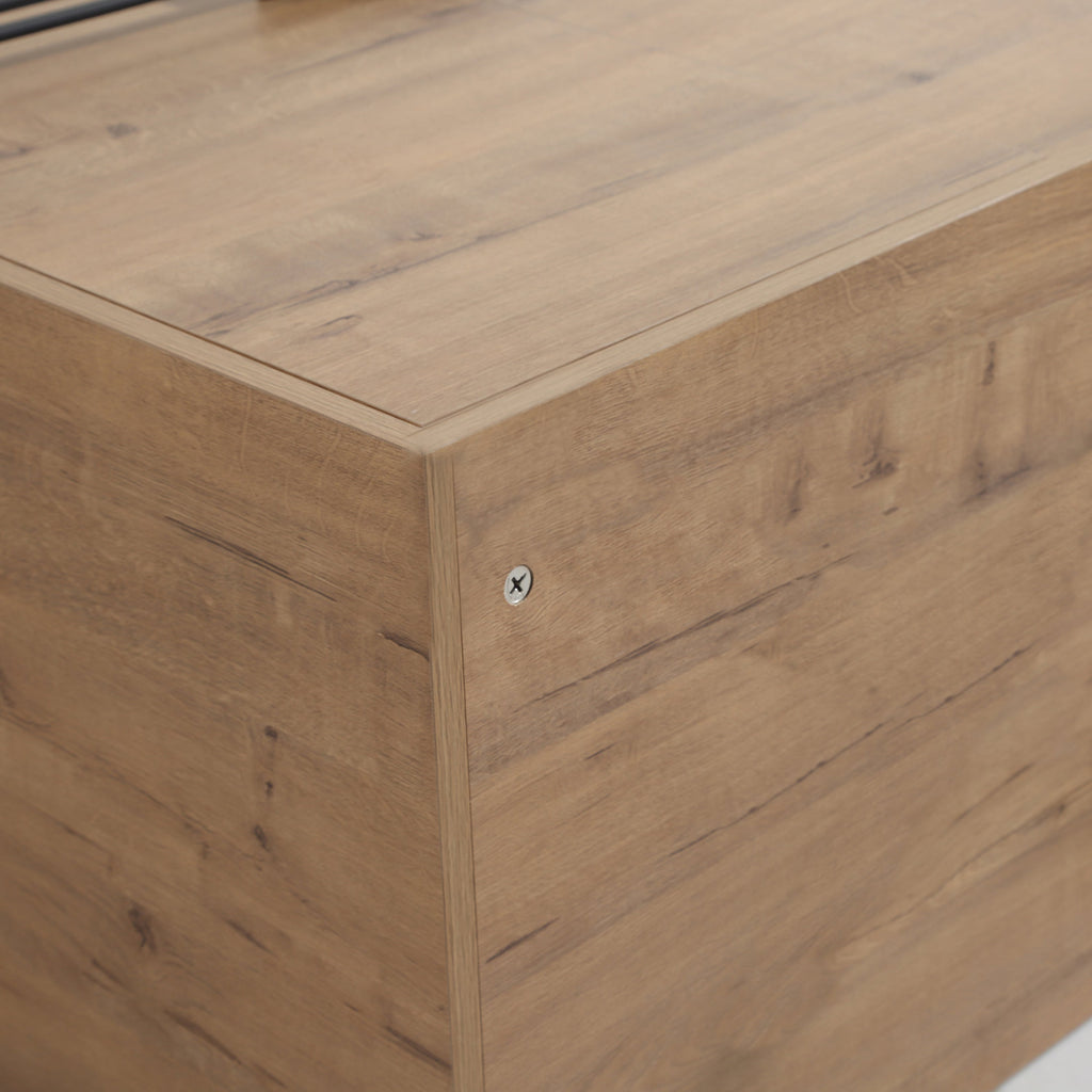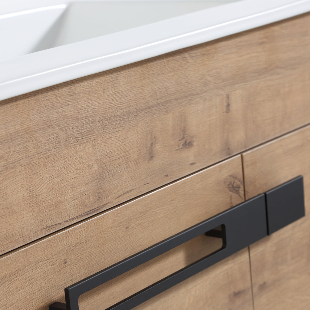 Vanity base is made of high quality "Eco-Friendly" plywood that surface material used "Scratch & Water-Resistant" melamine, which is designed to not only withstand threats of moisture and humidity but also easy to clean and maintain.