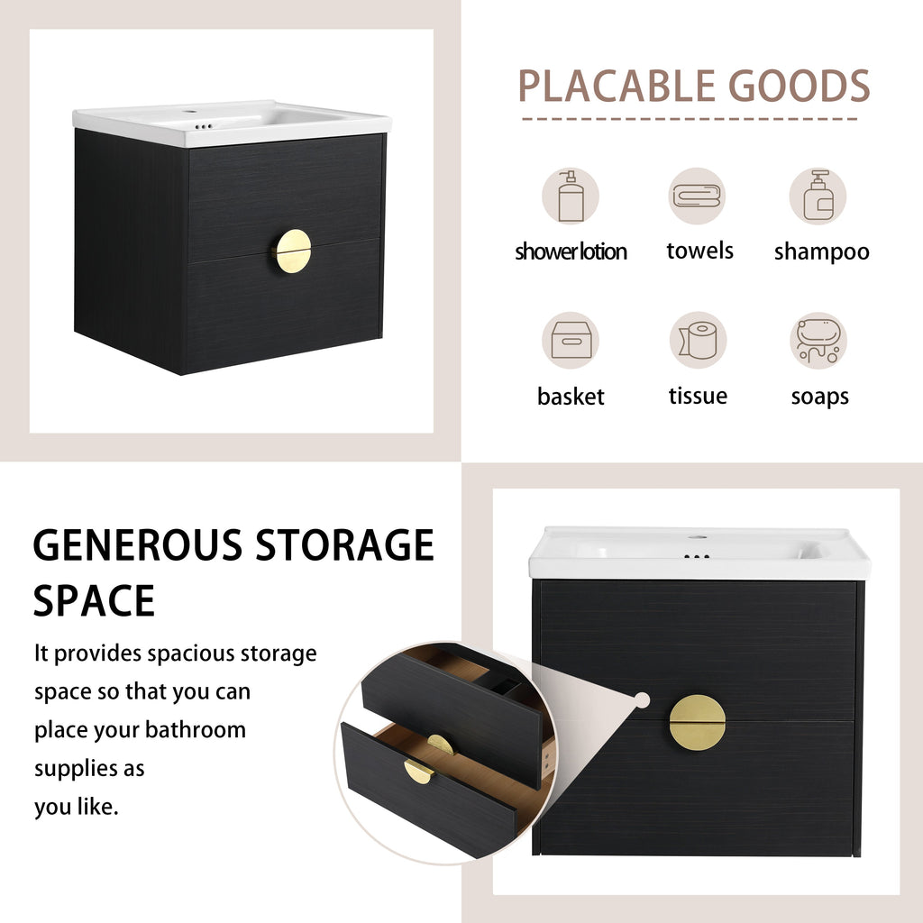 24 Inch Wall-Mounted Bathroom Vanity With Sink, For Small Bathroom (KD-Packing)