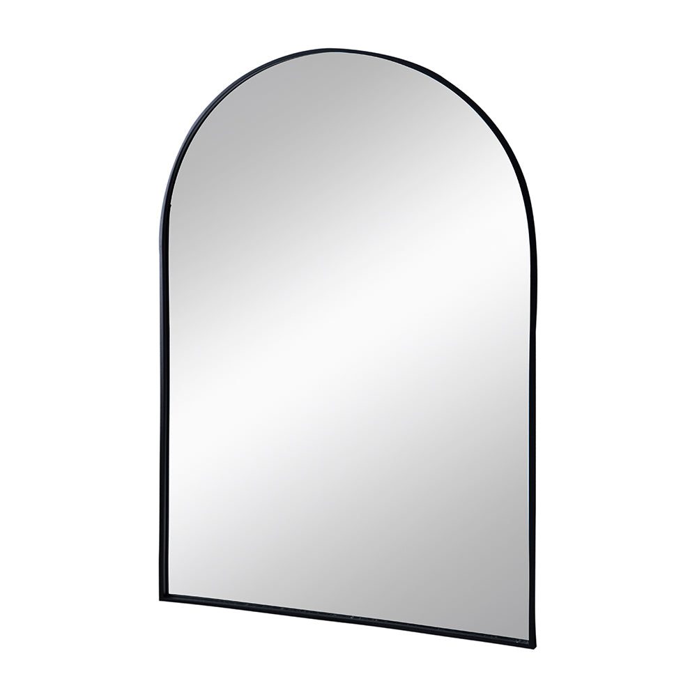 This mirror features a rounded arch top with a sleek black frame. Due to the simple silhouette, this mirror can fit into a wide variety of styles and decor seamlessly, providing a subtle modern charm to any space in your home. Measures at 24 x 36, making it a perfect accent for your bedroom, bathroom or entryway.