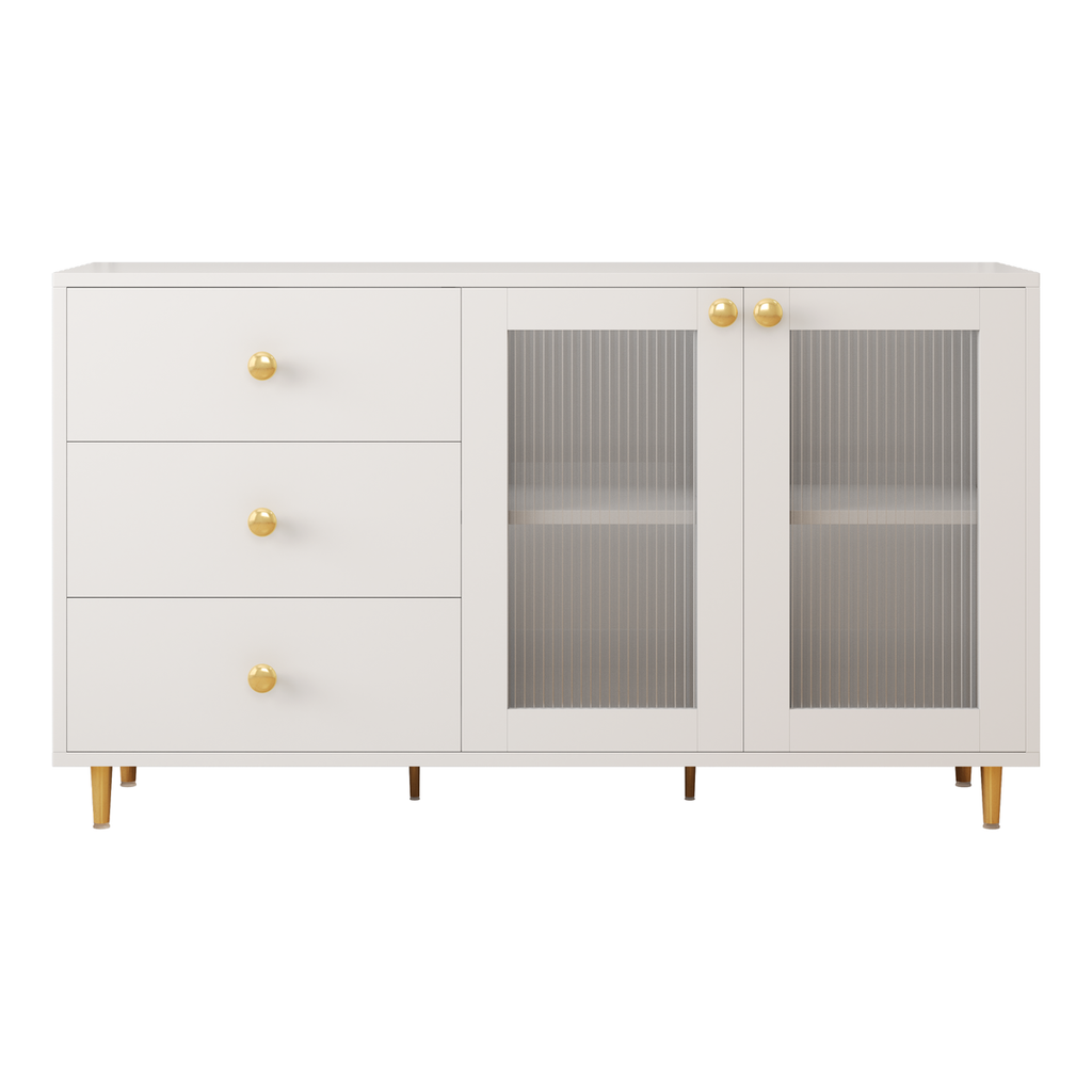 - Plenty of storage space: This side cabinet has 3 equal-sized drawers and fine glass doors. Built-in storage racks and lockers make the cabinet withstand greater weight and fully meet your daily storage needs for all sizes.