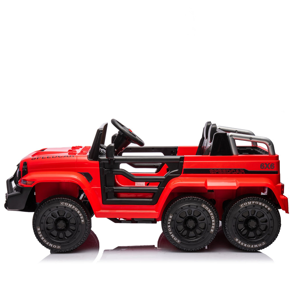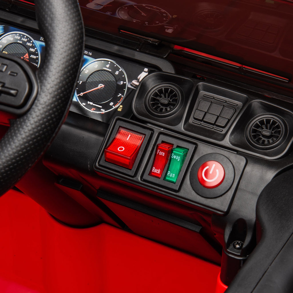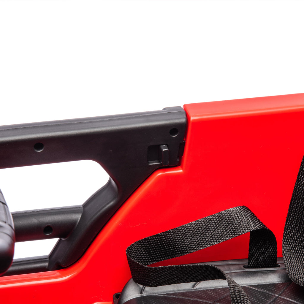 Music and Light System: Multimedia functionality allowing the child to enjoy music and vibrant lights. Five-Point Safety Harness: Ensures the child's safety during rides. High/Low Speed Mode: Adjustable speed settings suitable for various occasions. Convenient Carry Handle Design: Easy to transport, even when the battery is depleted. Parental Rear Seat: Allows parents to accompany the child during rides. Pickup Truck Styling: Stylish appearance combining storage and seating functionality. Multi-functional Trunk Space: Used for storage or seating, enhancing practicality. Four-Motor Power: Ensures stability, making the operation smoother. Six-Wheel Design: Unique appearance that captures attention. Rocking Chair Mode: Offers back-and-forth rocking, adding an element of playful entertainment.