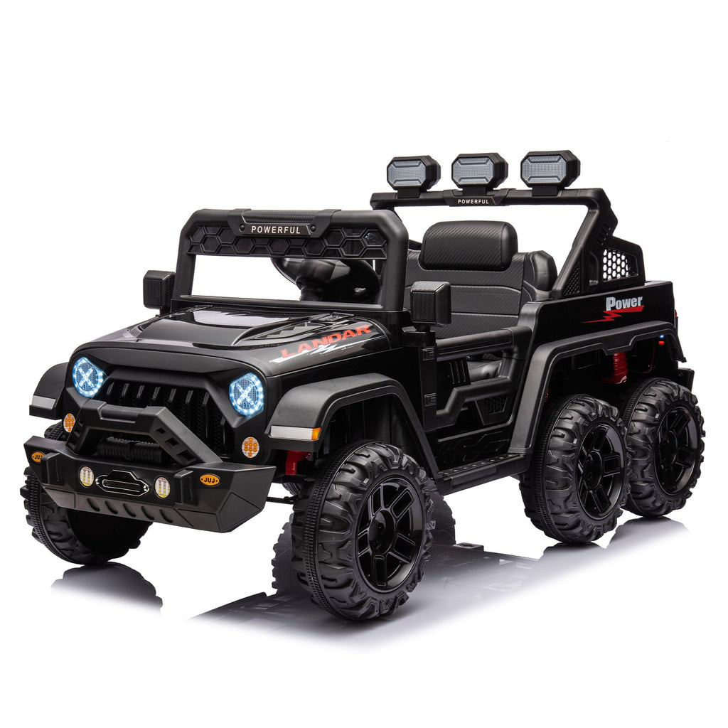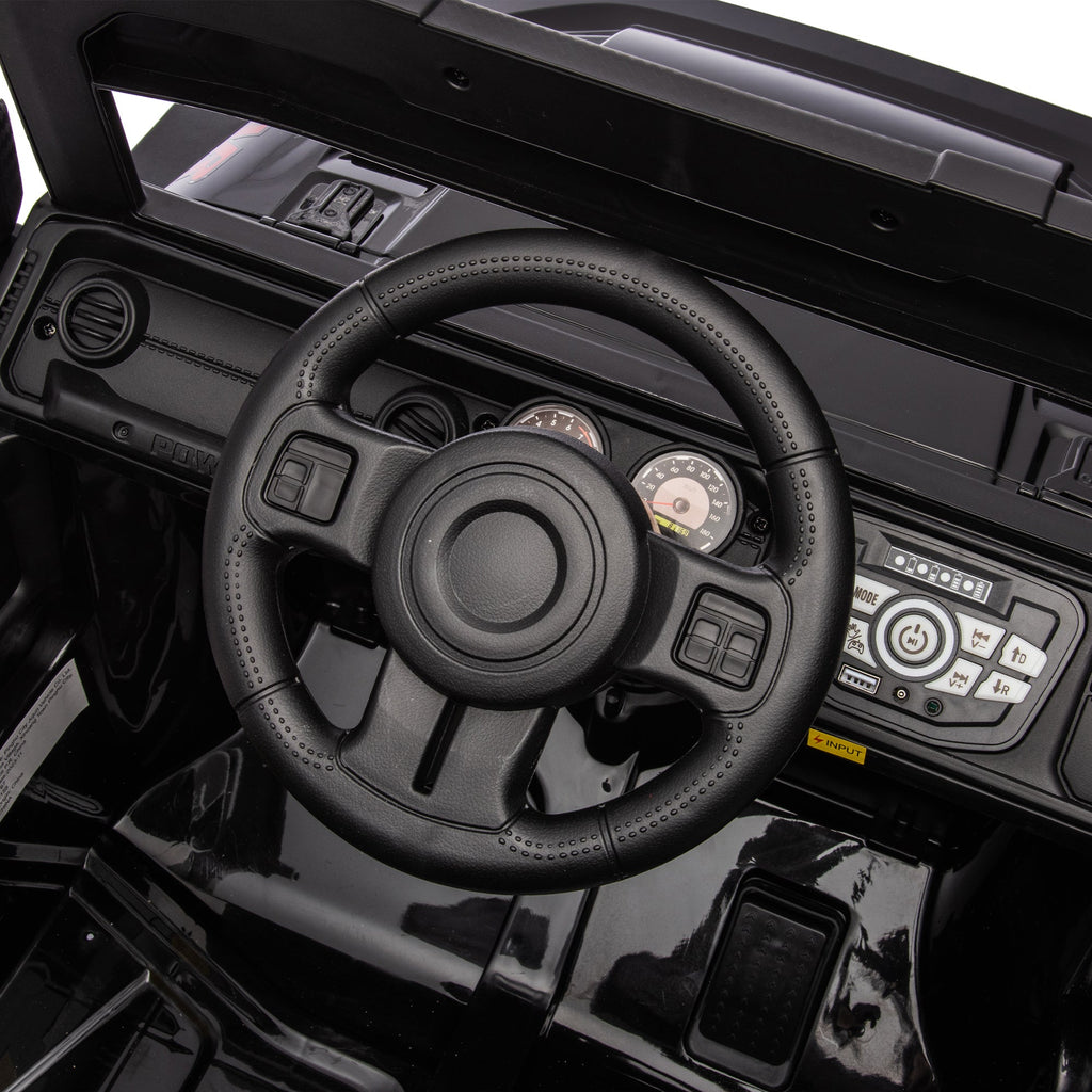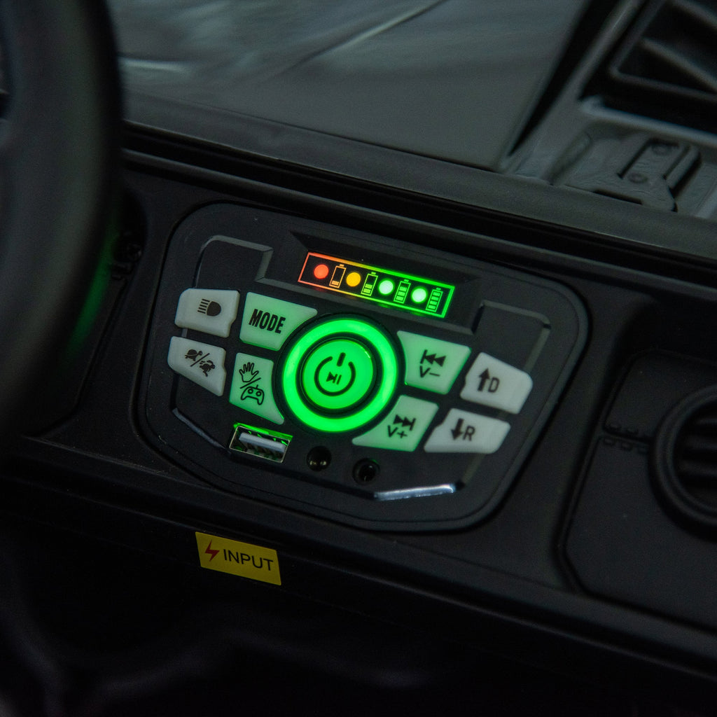 One-Key Steering Wheel Installation: Simplified installation process with a one-key steering wheel installation feature. Built-in Rear Storage Box with Reverse Warning Sound: Conveniently designed with a rear storage box and a reverse warning sound for added safety. Pickup Truck Styling with Ample Storage Space: Embrace the stylish appearance of a pickup truck with spacious storage at the back. Smooth Start, Dazzling Lights: Enjoy a smooth start and eye-catching lights for an exciting ride. Speed Range of 5.9-6.5 km/h, High Load Capacity: Powerful speed capabilities ranging from 5.9 to 6.5 km/h, with a high load capacity of up to 110.2 pounds. Longest Usage Time of Over 1 Hour: Extended playtime with a usage duration of more than 1 hour on a single charge. Four-Wheel Suspension, Four Powerful Motors: Experience a smooth ride with four-wheel suspension and powerful motors. Safe Smooth Start Feature: Prioritize safety with a gentle and safe smooth start..