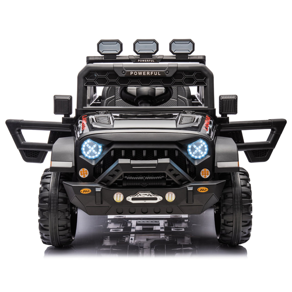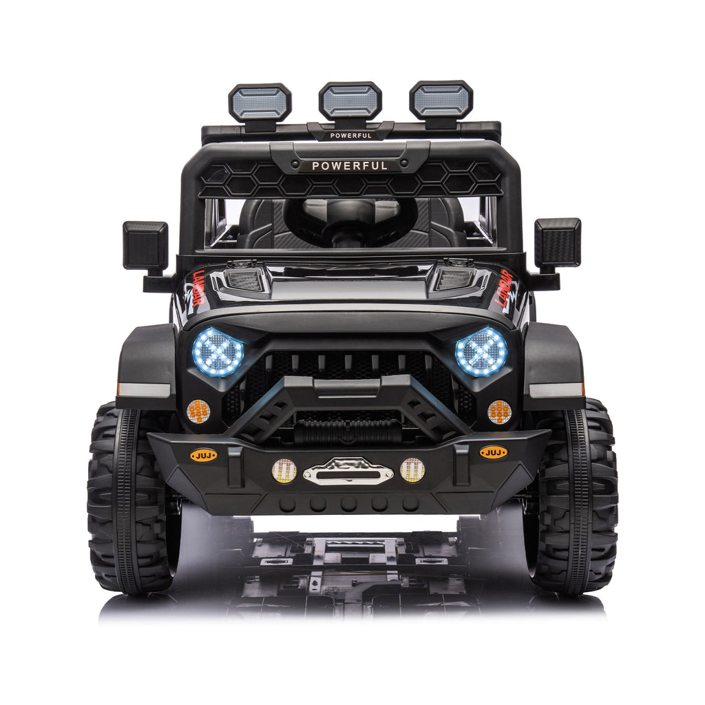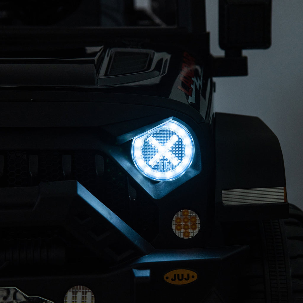 One-Key Steering Wheel Installation: Simplified installation process with a one-key steering wheel installation feature. Built-in Rear Storage Box with Reverse Warning Sound: Conveniently designed with a rear storage box and a reverse warning sound for added safety. Pickup Truck Styling with Ample Storage Space: Embrace the stylish appearance of a pickup truck with spacious storage at the back. Smooth Start, Dazzling Lights: Enjoy a smooth start and eye-catching lights for an exciting ride. Speed Range of 5.9-6.5 km/h, High Load Capacity: Powerful speed capabilities ranging from 5.9 to 6.5 km/h, with a high load capacity of up to 110.2 pounds. Longest Usage Time of Over 1 Hour: Extended playtime with a usage duration of more than 1 hour on a single charge. Four-Wheel Suspension, Four Powerful Motors: Experience a smooth ride with four-wheel suspension and powerful motors. Safe Smooth Start Feature: Prioritize safety with a gentle and safe smooth start..