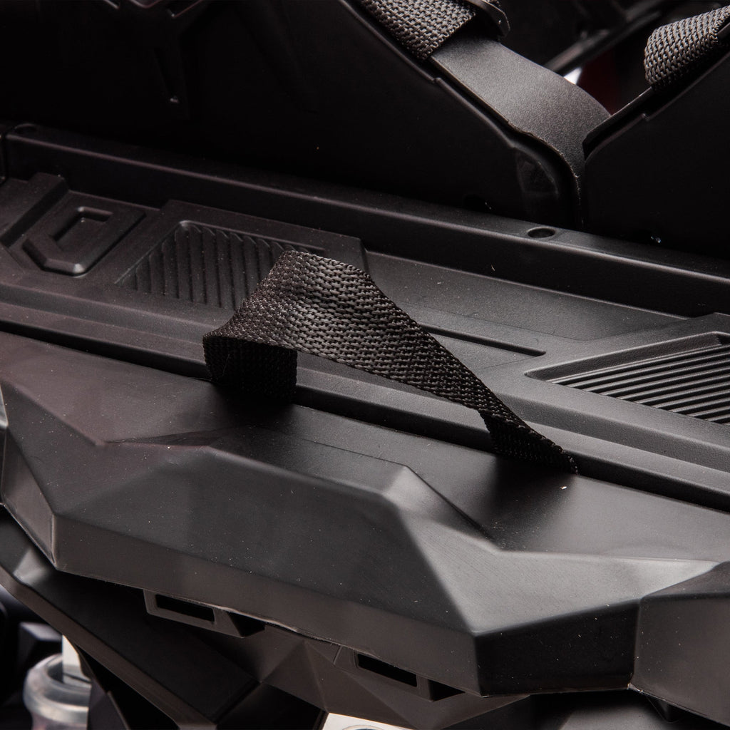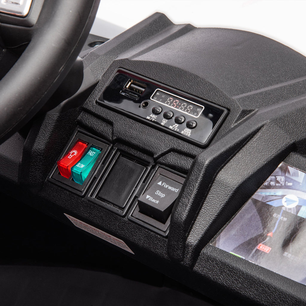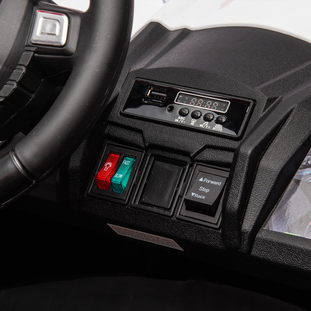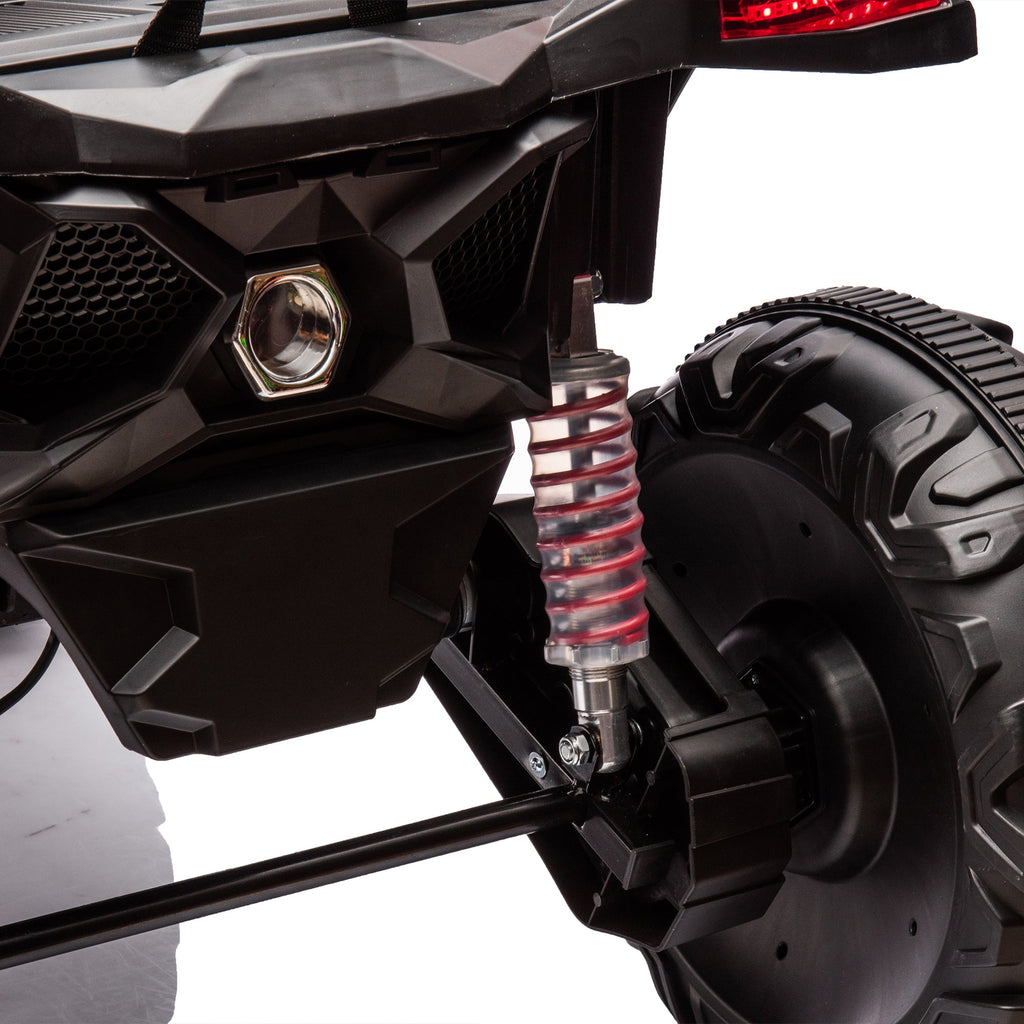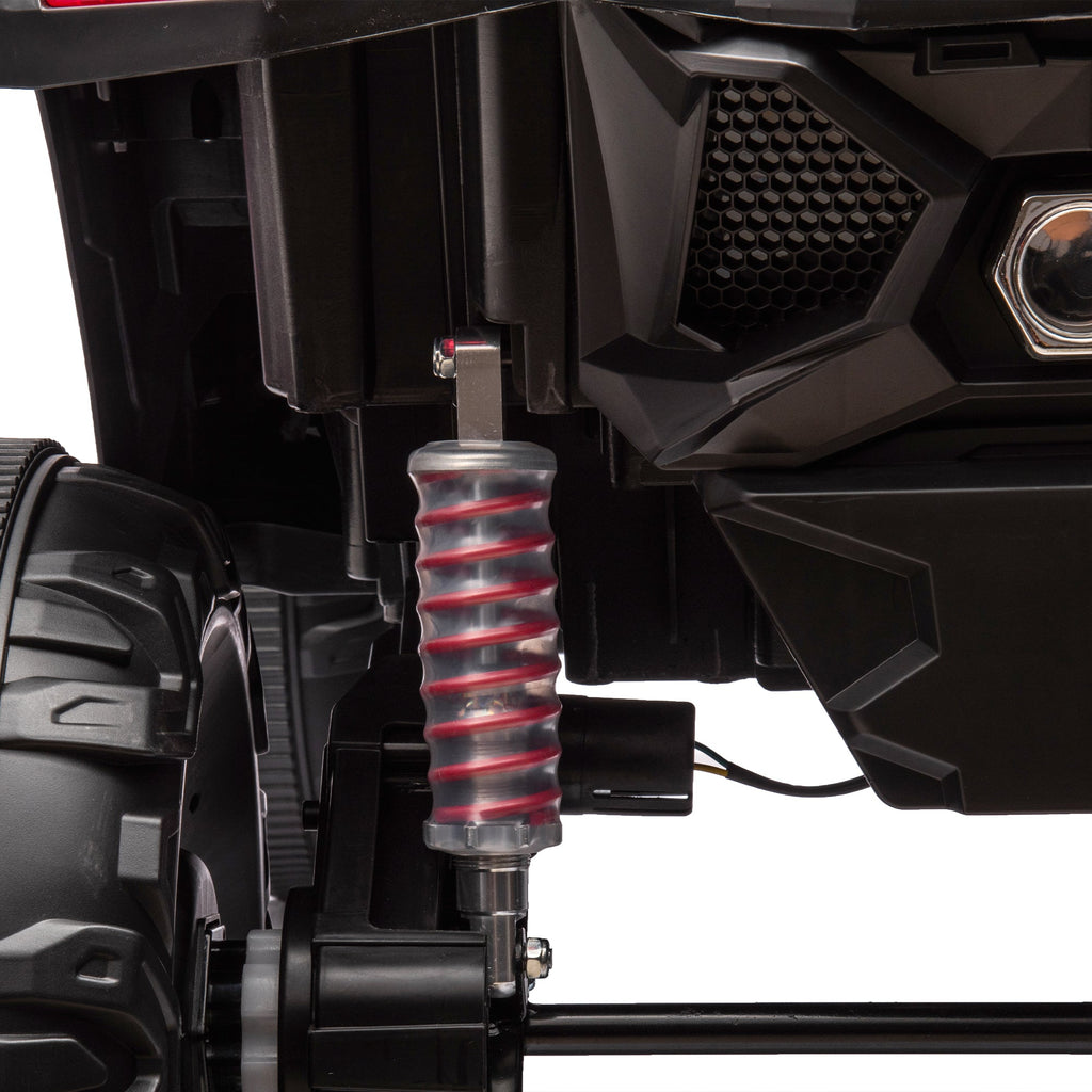The remote controller is designed with a focus on safety, ensuring a reassuring driving experience for your child. Convenient Start: One-key start for quick and hassle-free initiation, allowing your child to embark on every adventure with ease. Independent Light Control: Equipped with an independent light switch, adding a cool and personalized touch to the driving experience. Easy-to-Operate Driving: Flexible forward and backward functions create a realistic driving feel, enabling your child to effortlessly master driving skills. Spectacular Lighting Effects: Designed with eye-catching lighting effects, elevating the entire driving experience to an exhilarating level. Comprehensive Safety: The dual-position safety belt ensures all-around protection, keeping your child safe throughout the journey. Outstanding Suspension System: Featuring four-wheel suspension and a high-strength shock absorption system, providing a smooth and comfortable driving experience. Four-Motor Acceleration: Four motors deliver faster acceleration, adding excitement and thrill to the driving adventure. Soulful Switching Experience: The lightning-fast switch to rear-wheel drive adds a soulful touch to the driving experience, ensuring versatility and excitement.