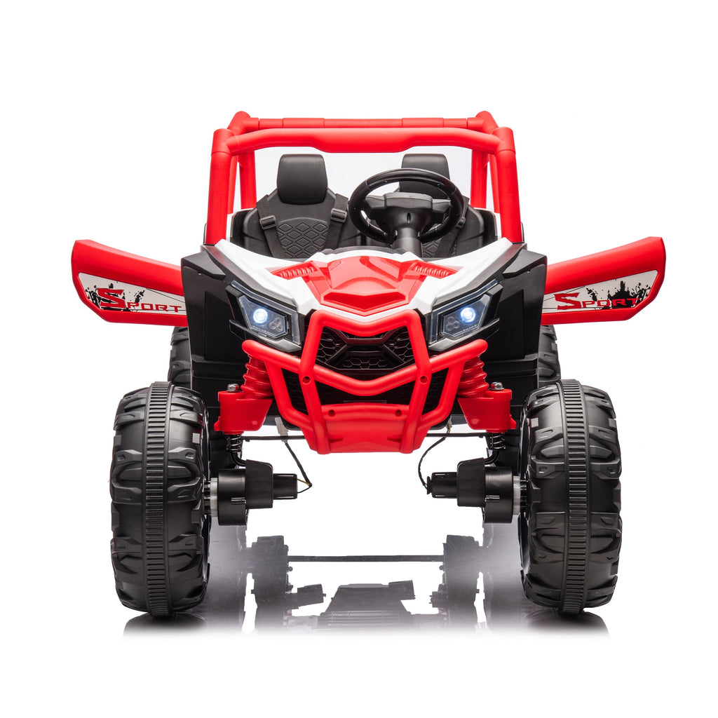 BATTERY:24v7AH MOTOR:550#*4 Maxmum Load: 110.2 lbs Car speed: 3.7~5.7km/h Applicable age: 3-8 years old Test standards:ASTM,CPSIA,MSDS,CPC FUNCTION: One-Key Start USB and TF Card Slots Bluetooth Battery Level Display Music LED Headlights High and Low-Speed Modes Rear Four-Wheel SuspensionLightning Switching (Rear-wheel drive, Four-wheel drive one-key switching) Four-wheel Drive Seats Two Children Large-size Children's Off-road UTV Healthy and Environmentally Friendly Materials