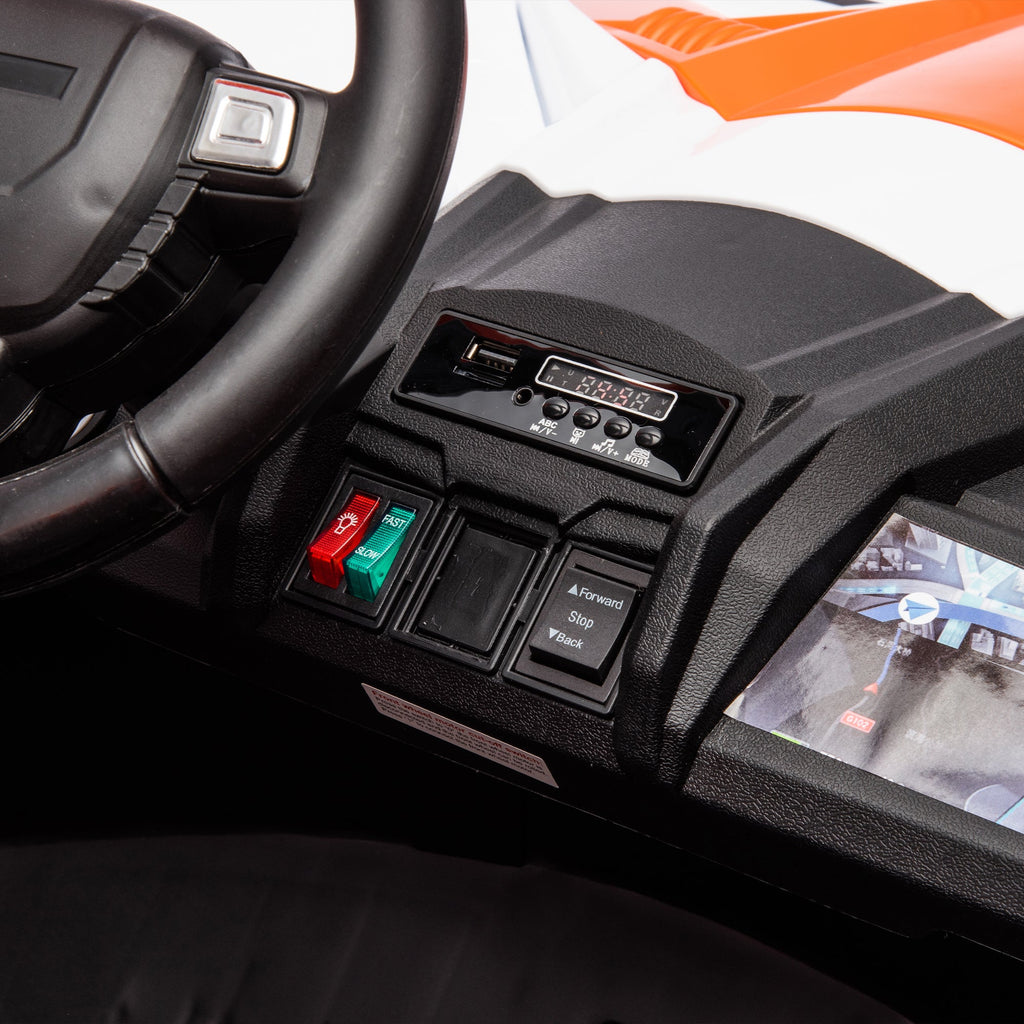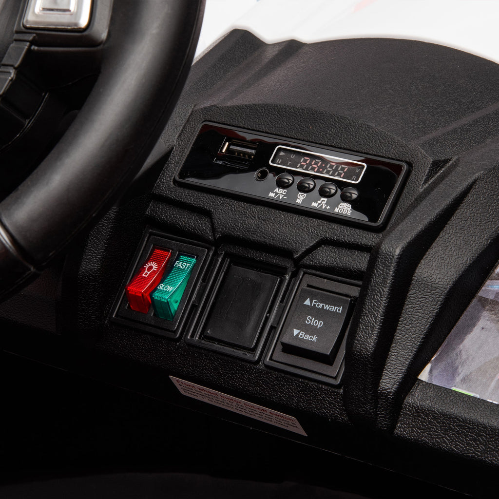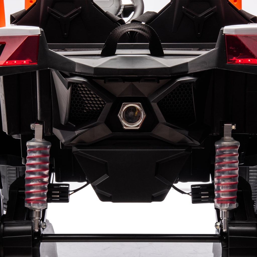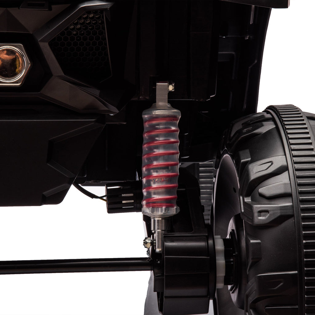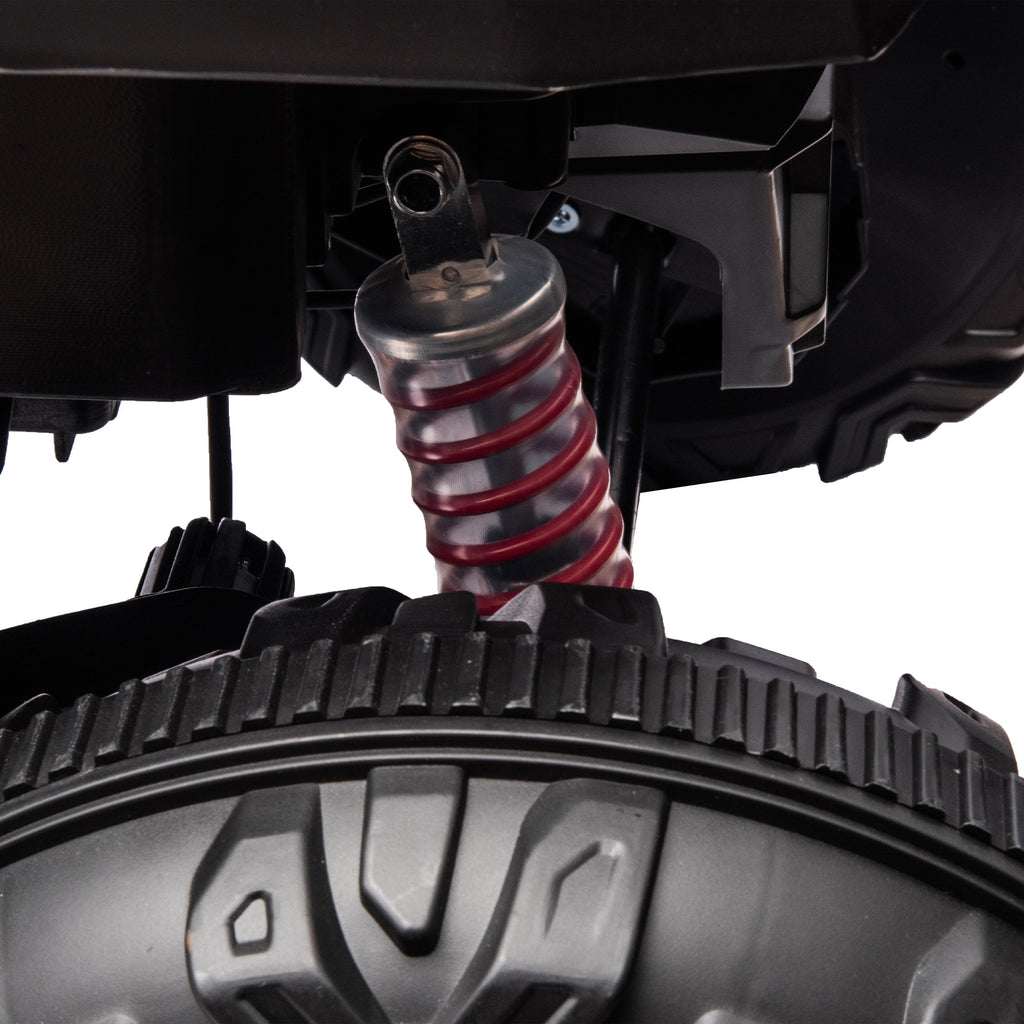 The remote controller is designed with a focus on safety, ensuring a reassuring driving experience for your child. Convenient Start: One-key start for quick and hassle-free initiation, allowing your child to embark on every adventure with ease. Independent Light Control: Equipped with an independent light switch, adding a cool and personalized touch to the driving experience. Easy-to-Operate Driving: Flexible forward and backward functions create a realistic driving feel, enabling your child to effortlessly master driving skills. Spectacular Lighting Effects: Designed with eye-catching lighting effects, elevating the entire driving experience to an exhilarating level. Comprehensive Safety: The dual-position safety belt ensures all-around protection, keeping your child safe throughout the journey. Outstanding Suspension System: Featuring four-wheel suspension and a high-strength shock absorption system, providing a smooth and comfortable driving experience. Four-Motor Acceleration: Four motors deliver faster acceleration, adding excitement and thrill to the driving adventure. Soulful Switching Experience: The lightning-fast switch to rear-wheel drive adds a soulful touch to the driving experience, ensuring versatility and excitement.