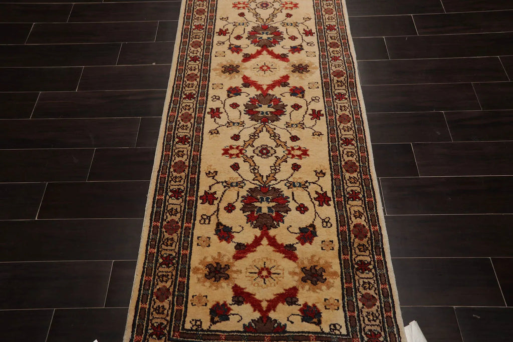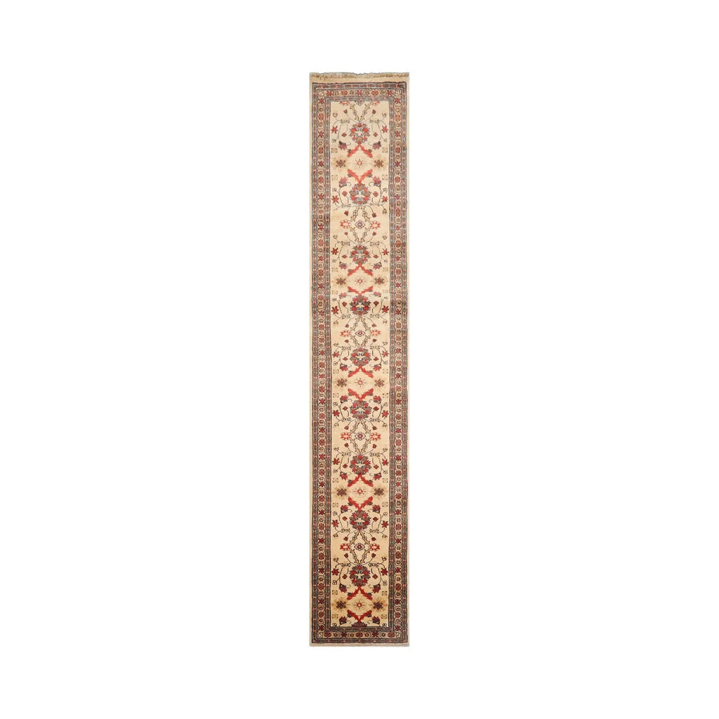 This is a beautiful Beige, Rust, Chocolate, Brown, Gold, Multi Hand Knotted Runner from Pakistan. Made by skilled craftsman, the rug is a beautiful symphony of bold motifs, stunning colors and consummate artisanship. This rug representing an illustrious legacy of exquisite artistry and intricate craftsmanship is primed to add visual glamor and class to its surroundings. Its soft texture and timeless design make it ideal to enhance any space where it is placed.