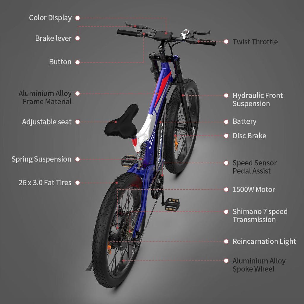 26" 1500W Electric Bike Fat Tire P7 48V 20AH Removable Lithium Battery for Adults S17-1500W