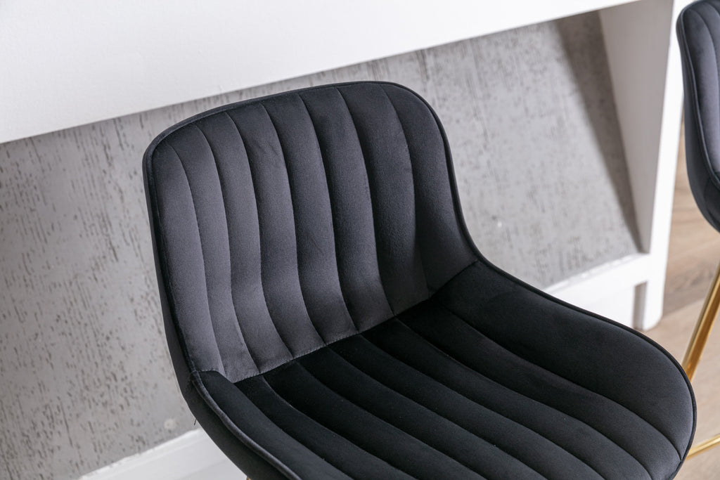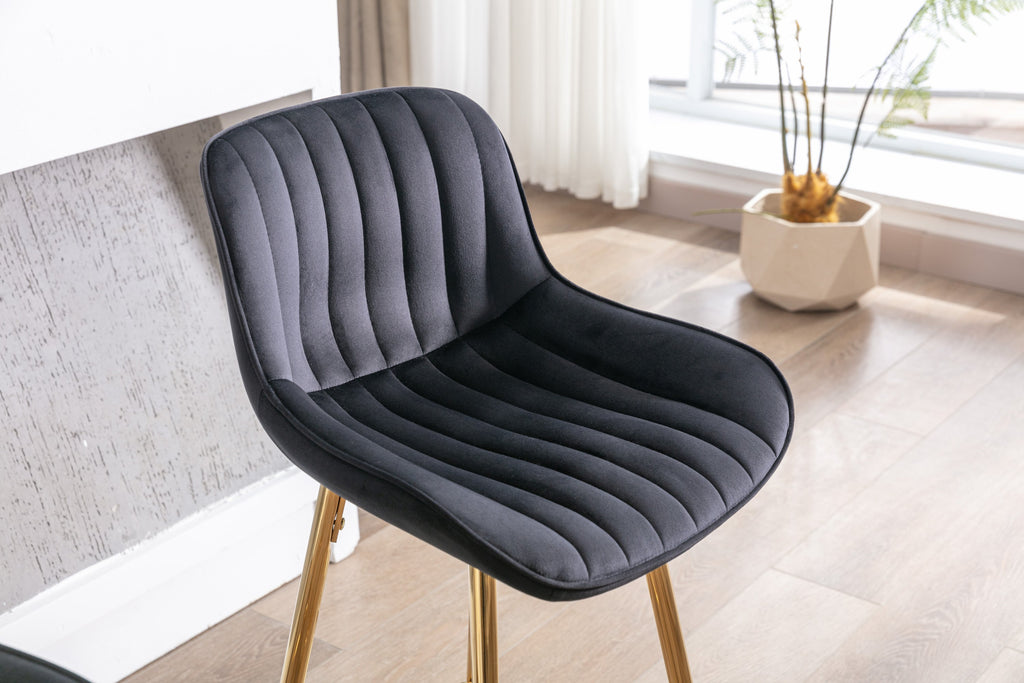26 Inch Set of 2 Bar Stools, with Chrome Footrest Velvet Fabric Counter Stool Golden Leg Simple Bar Stool, BLACK