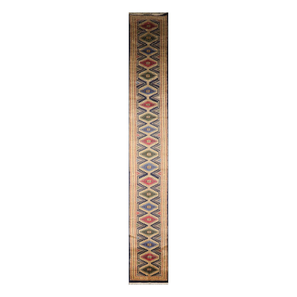 Story Behind the Art The term "Pakistani Bokhara" is used to describe modern Tekke-faced rugs made in Pakistan. Using a combination of NZ worsted and local Pakistani wool on a cotton base, the Pakistani Bokhara has a very soft and thick pile. The length of the pile varies depending on the clipping of the particular rug. Sometimes the pile is intentionally left significantly longer, called "double pile", resulting in extra thickness and depth. The Pakistani Bokharas are very popular for their soft, luxurious feel, heavy pile, attractive colors and appearance, and for their affordability.