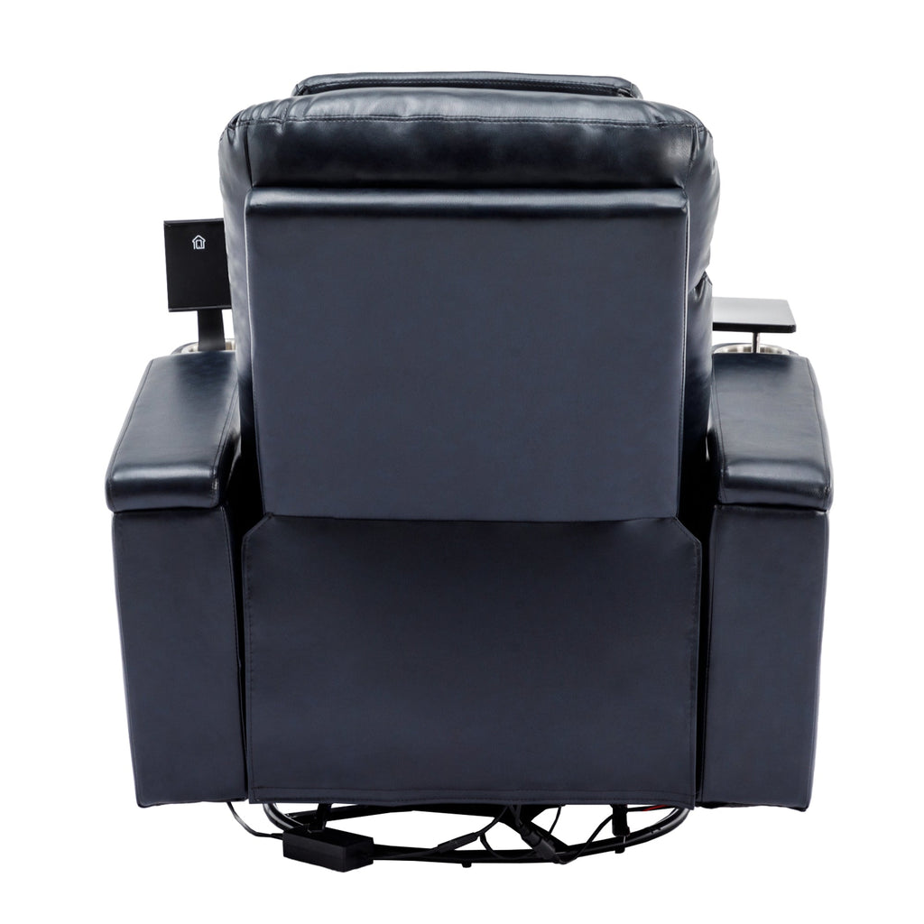 【Recliner Chair】Equipped with electric button design, smoothly adjust to reclining position you prefer by pressing two buttons from 90 degree to 160 degree without the worry of wire intertwining. 【USB Charging Port and Cup Holders】The chair has USB outlets that keep your devices charging and dual side pockets for small items within reach, two cup holders on both sides of armrests best meets your needs. 【360° Swivel Tray Table and Phone Holder】Swivel tray is perfect for use with a laptop or tablet when you need to work, or to hold your snacks during the show.Moreover,The reclilner with cell phone stand can free hands to look at the phone and adjust various viewing angles. 【Design for home theater】Enjoy the movie theater experience in your own home with your loved beings. Integrated and sturdy fame, made of durable metal to support body weight up to 330lbs.