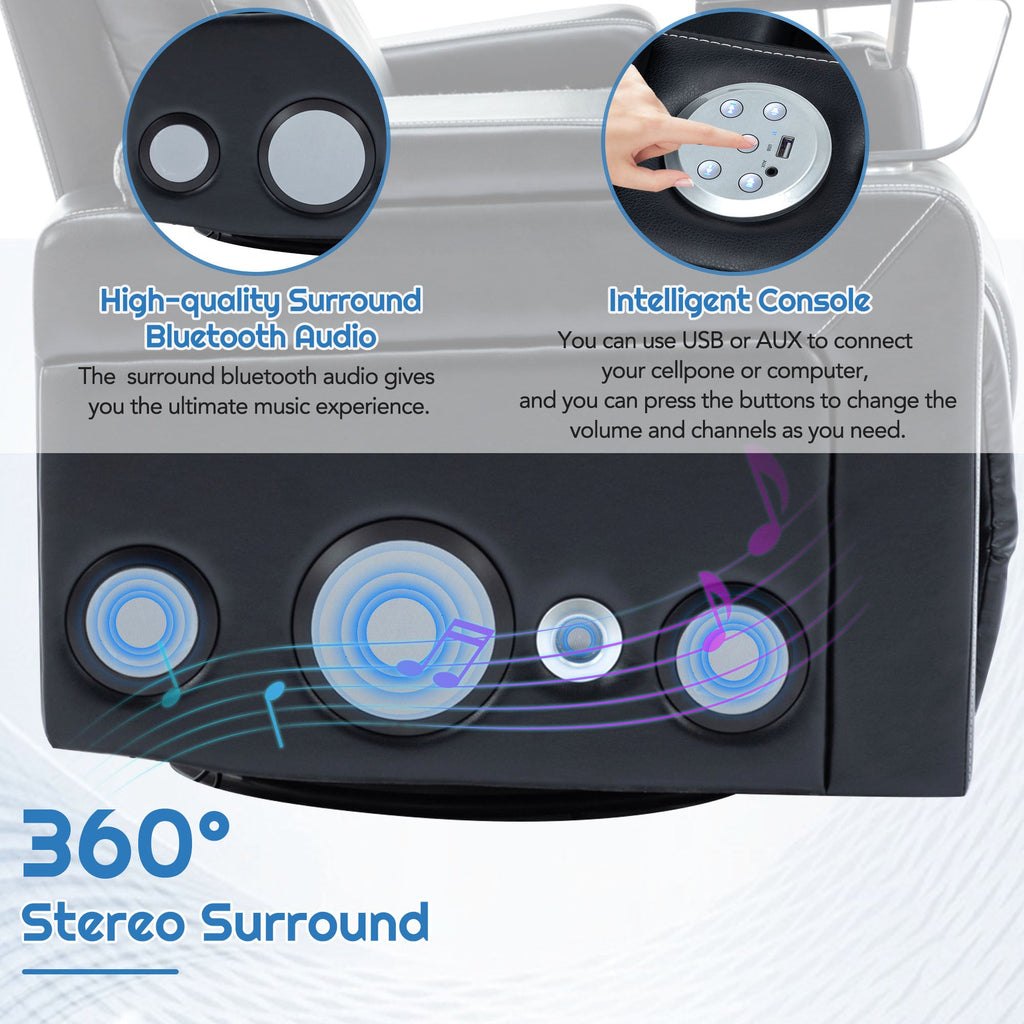 - High-quality Surround Bluetooth Audio - A high-quality Bluetooth stereo is installed on the side of the recliner and you can directly enjoy high-quality stereo surround sound by simply connecting it through your cell phone's Bluetooth.