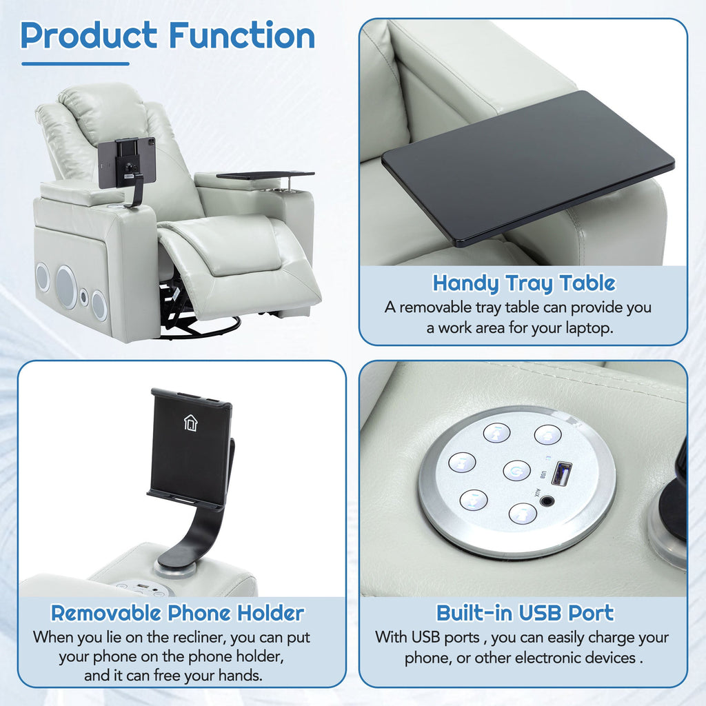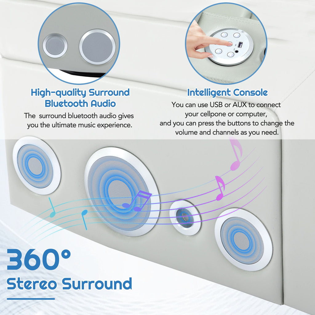 - High-quality Surround Bluetooth Audio - A high-quality Bluetooth stereo is installed on the side of the recliner and you can directly enjoy high-quality stereo surround sound by simply connecting it through your cell phone's Bluetooth.