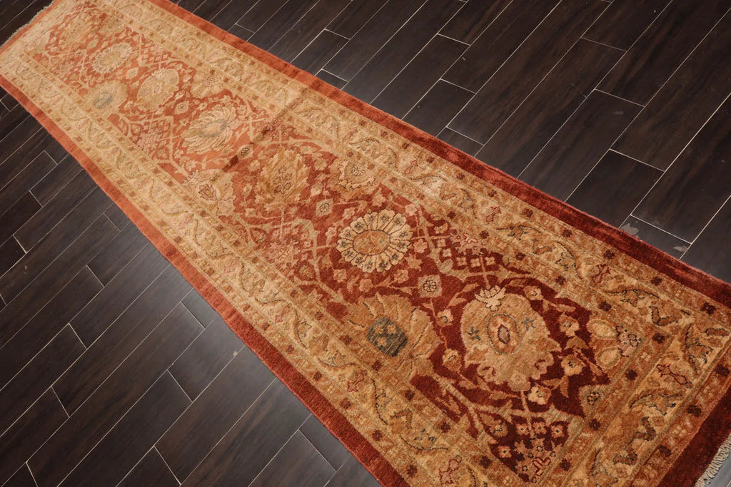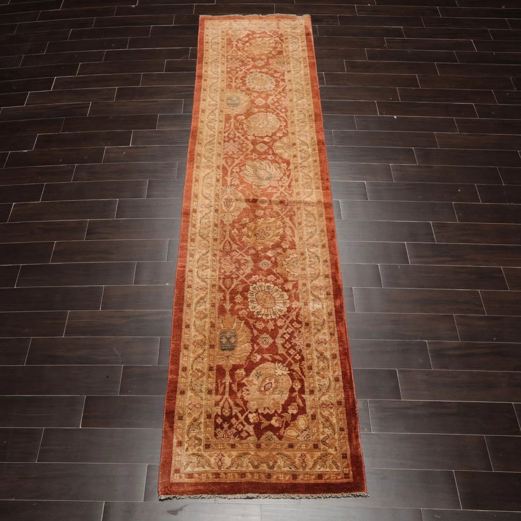 This is a beautiful Muted Terracotta, Beige, Gold, Brown, Gray, Multi Hand Knotted Runner from Pakistan. Pakistan has a rug weaving tradition dating back to 11th century and possesses the artisanship to produce any type of rug using the vast repertoire of Persian and Oriental designs and motifs. Made by skilled craftsman, the rug is a beautiful symphony of bold motifs, stunning colors and consummate artisanship. This rug representing an illustrious legacy of exquisite artistry and intricate craftsmanship is primed to add visual glamor and class to its surroundings. Its soft texture and timeless design make it ideal to enhance any space where it is placed.