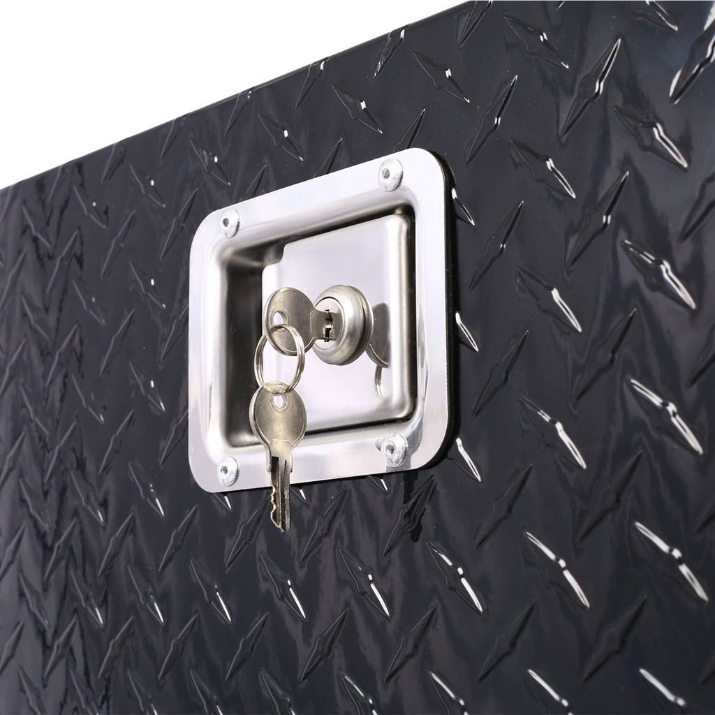 2. Lightweight yet sturdy: The lightweight design of this truck toolbox means it won't add significant weight to your tractor, trailer, or truck. It's also incredibly sturdy, thanks to the 5 bar tread pattern that reinforces the aluminum.